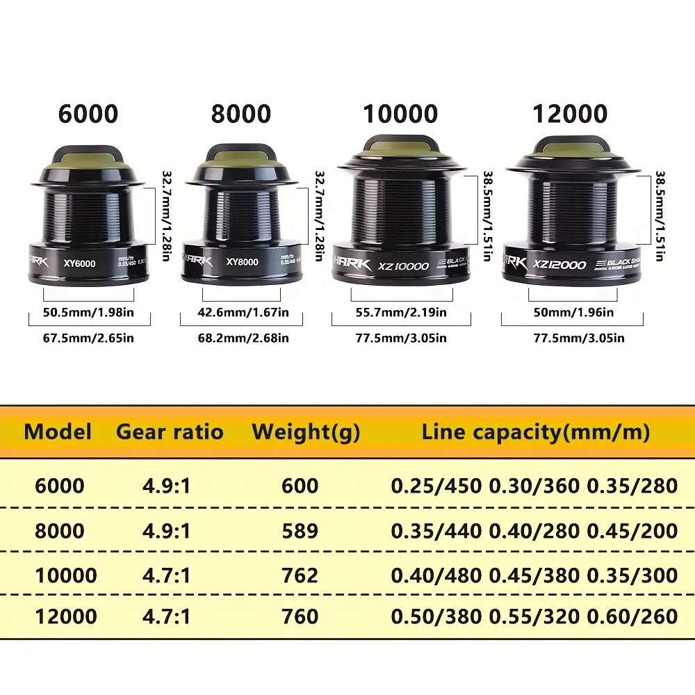【Weight Range】: Catering to various fishing needs, this reel supports line capacities of 6000-12000, suitable for catching larger fish species.
