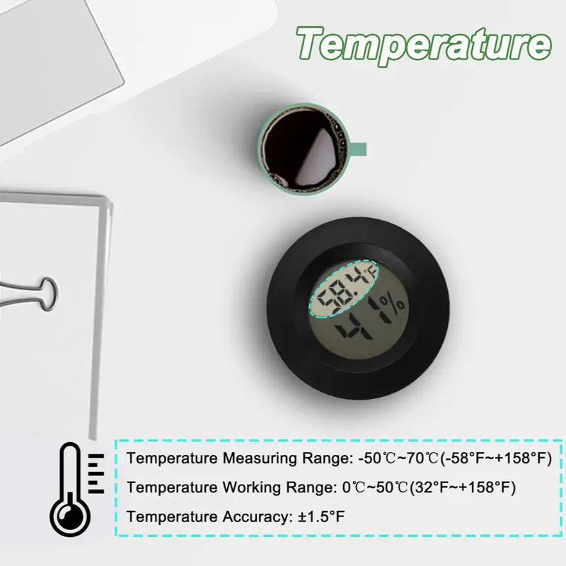 ·Key Features: Includes a hygrometer and thermostat in one unit. The magnetic base ensures it stays in place, offering convenience and reliability. 📈