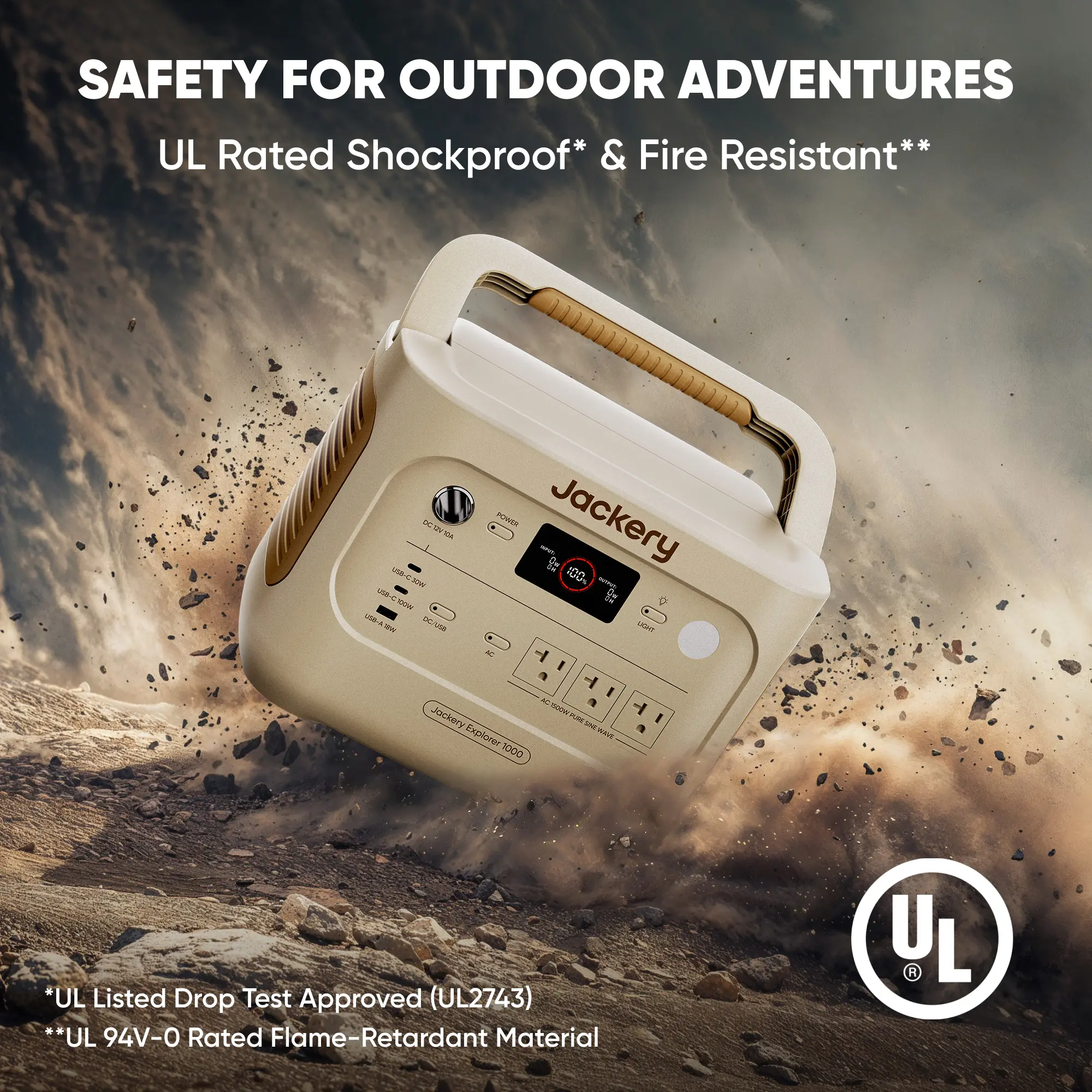 Jackery Solar Generator 1000 100W Air – High-capacity solar lithium battery with stable AC output, ideal as emergency backup for snowstorms, storms, power outages and off-grid scenarios, plus fast delivery service.
