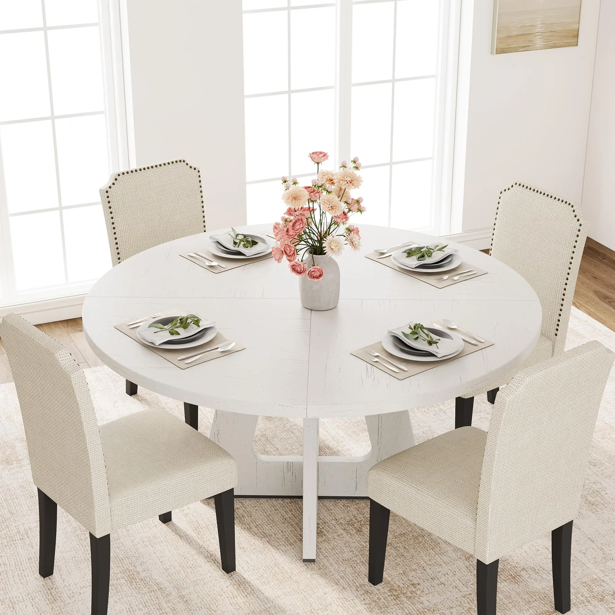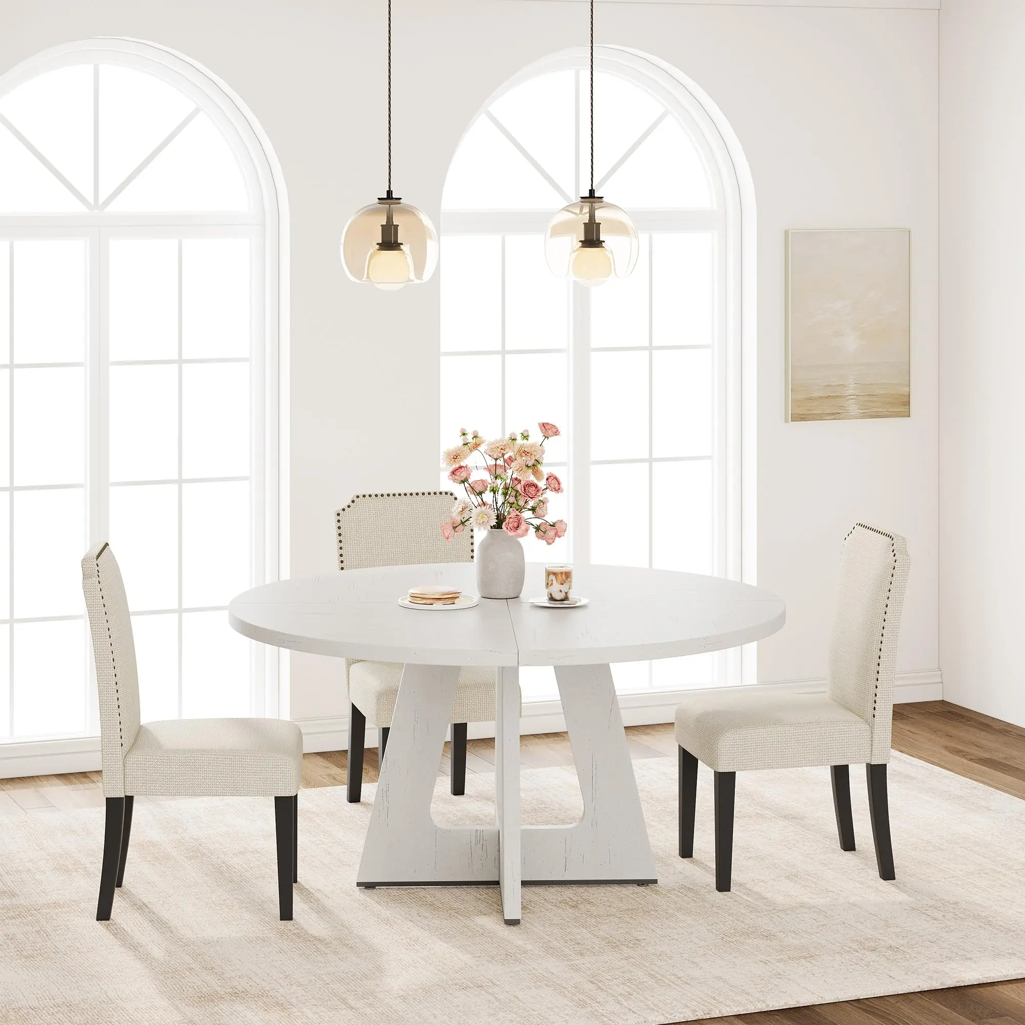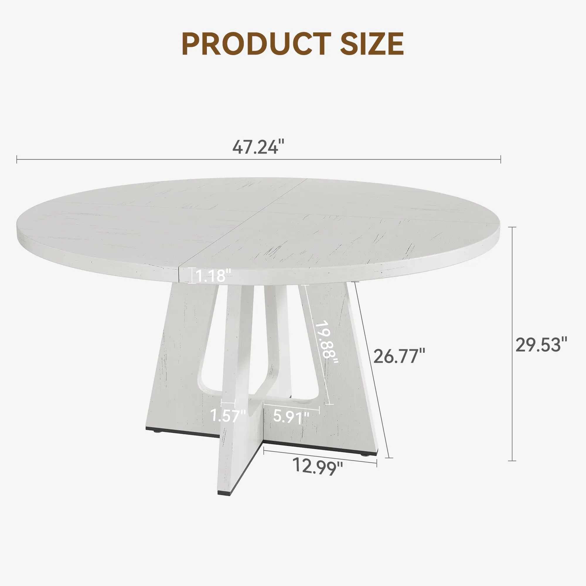 · Strong Load-Bearing Capacity: Made from a 1.18-inch thick MDF board and supported by solid wooden legs measuring 1.57 inches in thickness, this 47-inch round kitchen table can support a maximum load of up to 300 pounds. You can confidently place tableware, drinks, and decorations—even near the edges—without worrying about tipping due to uneven weight distribution.