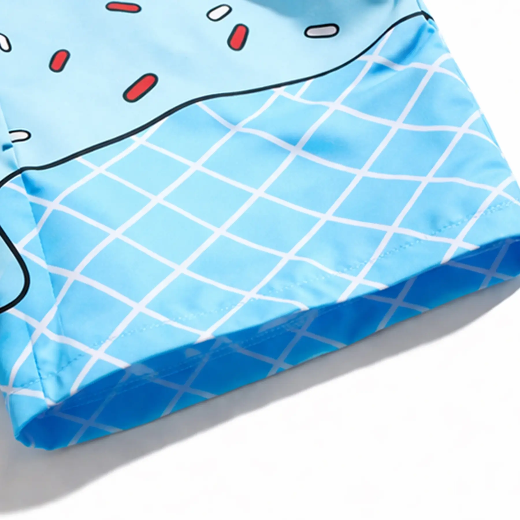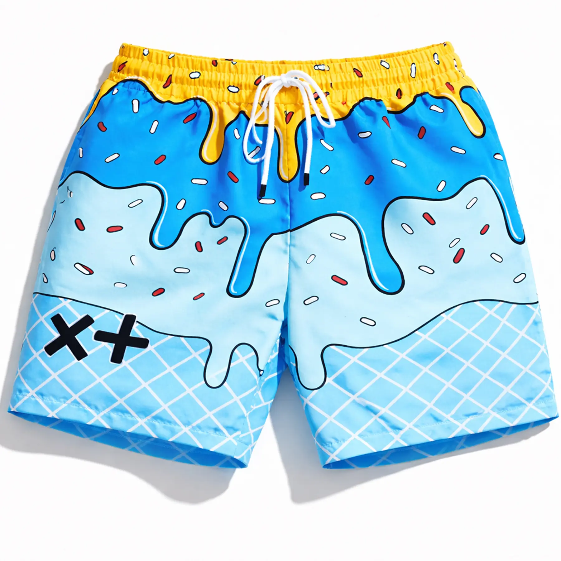 Featuring a trendy "melting ice cream" theme, these shorts boast an American-style cartoon graffiti aesthetic. High-precision digital full-print technology ensures vibrant, fade-resistant colors. Perfect for seaside vacations or pool parties, they capture stunning photos effortlessly. Unlike basic solid-color shorts, these offer maximum individuality and recognition, creating a quintessential summer vibe.