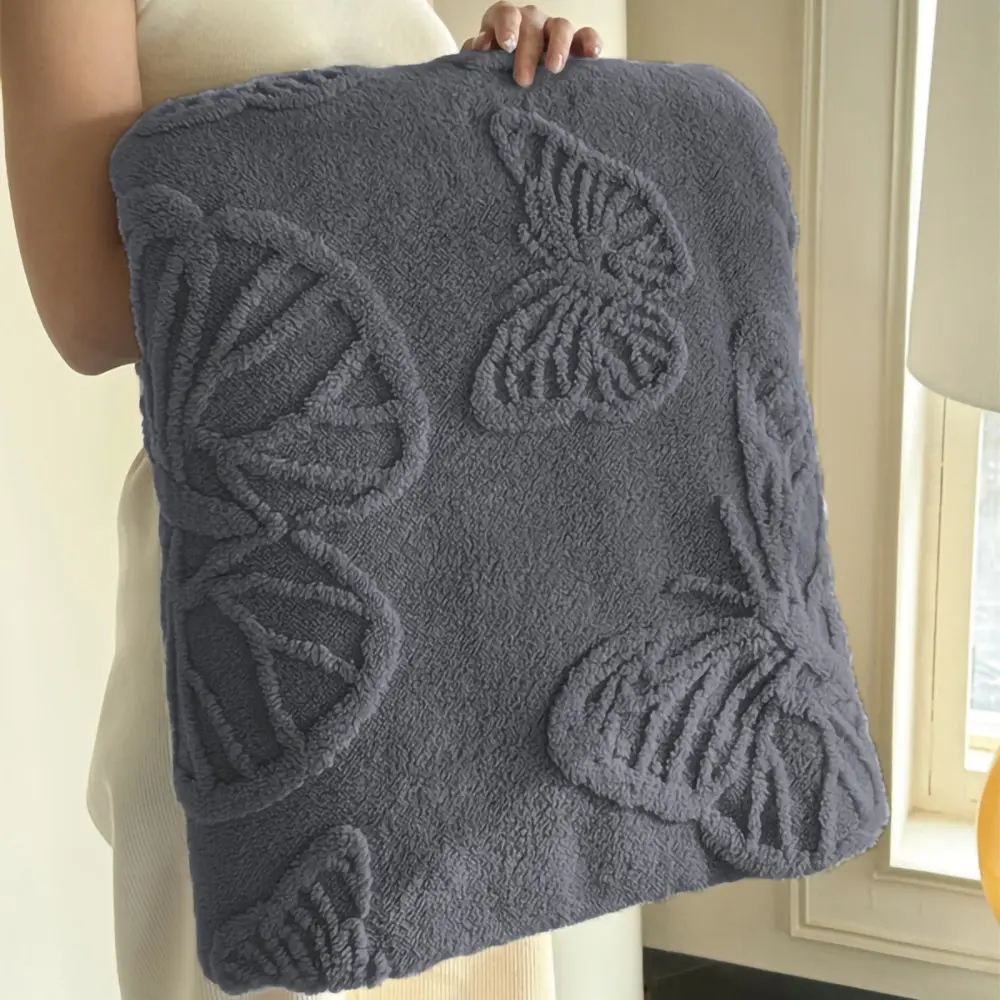 Wool Butterfly Blanket for Sofa Bed, 3D Embroidered Soft Flannel, All-Season Size, Comfortable for Bed Couch Office Camping