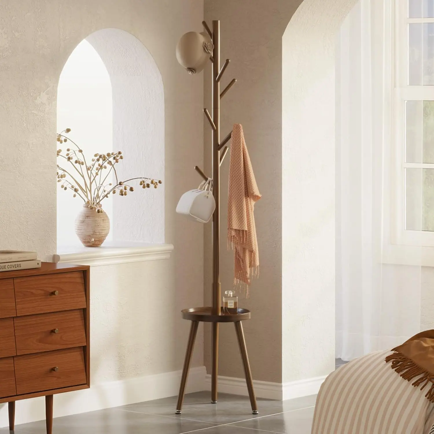 has created a perfect tree coat stand with storage for you.With this coat storage rack, there will be no more messy clothes in the living room, bedroom, or laundry room and you will never find keys, mobile phones, and wallets laying around again.Even children can develop a good habit of keeping everything in its place.