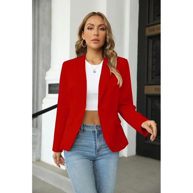 Material: Polyester & Spandex. Soft fabric. This jacket comes with a full lining. Soft and Comfortable to Wear. Features: Long Sleeve, Open Front, Single Front Button, Lapel Style, Pockets, Solid Color Unique Blazers Coats for your choice, elegant, classic and fancy. Casual blazer jackets for women, women work office suit, work blazers for women office professional. Design: Basic lapel collar blazer jacket for women. The single front button makes it easy to put on and take off. Two functional flap pockets, perfectly carrying some necessity, or nailing a chic look. Occasion: Jackets for women casual blazer, blazer outfits for women. Casual wear blazer or business office, work, meeting, night out, going out, etc. Whether paired with a suit or jeans, this blazer will give you a fashions modern layered look. Size: Please choose your size according our size chart in picture!