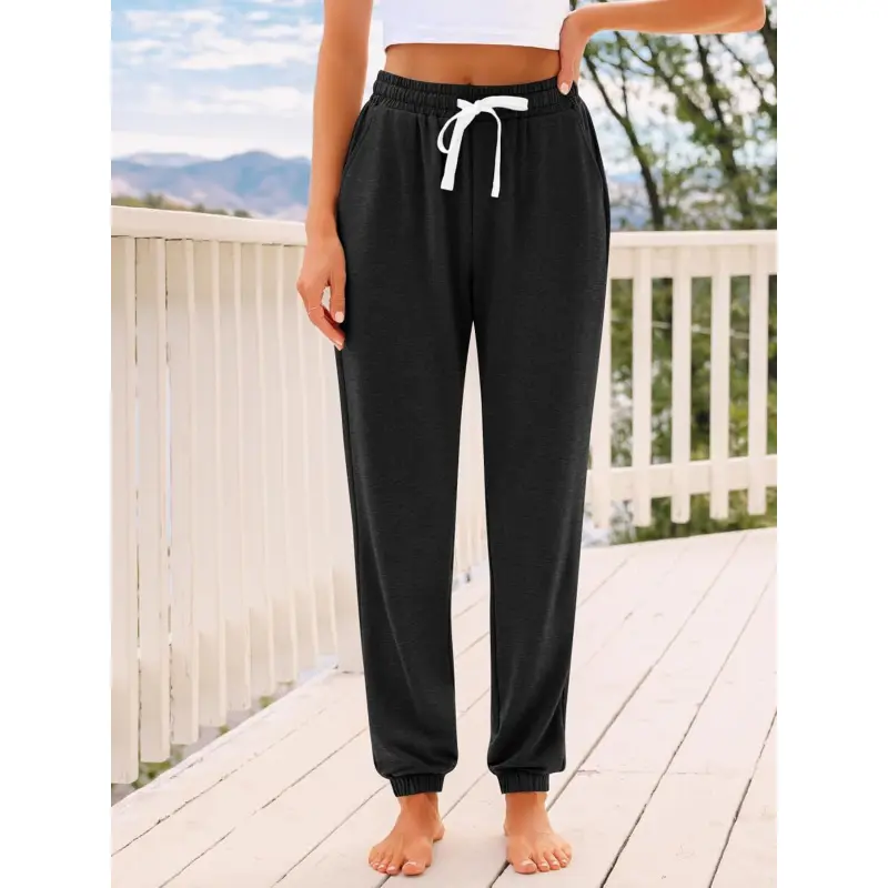 Soft, Breathable Fabric:Made from a premium blend of 60% Polyester, 35% Rayon, and 5% Spandex, this fabric offers exceptional softness against your skin, durable comfort, and just the right amount of stretch. It’s easy-care and maintains its shape wash after wash Customizable Comfort Fit:Experience a flawlessly personal fit with the high-rise waistband, featuring a soft elastic and an adjustable drawstring. The intentionally relaxed, loose-fit silhouette through the hips and legs allows for unrestricted movement and all-day ease Versatile All-Day Wear:This pant effortlessly transitions between multiple roles in your wardrobe. It’s the perfect loungewear for home, cozy sleepwear, reliable travel pants, and a stylish casual essential for running errands or relaxing outdoors Designed for Movement & Relaxation:Crafted for both active moments and deep rest, the flexible design is ideal for yoga, pilates, stretching, or walking. After your activity, they remain perfect for winding down, lounging, or a restful night’s sleep Your Three-Season Staple:A must-have for your in-between weather wardrobe. These pants provide comfortable coverage and cozy warmth that’s perfectly suited for the cool days of spring, the crisp air of fall, and the need for layered comfort in winter