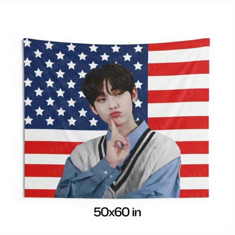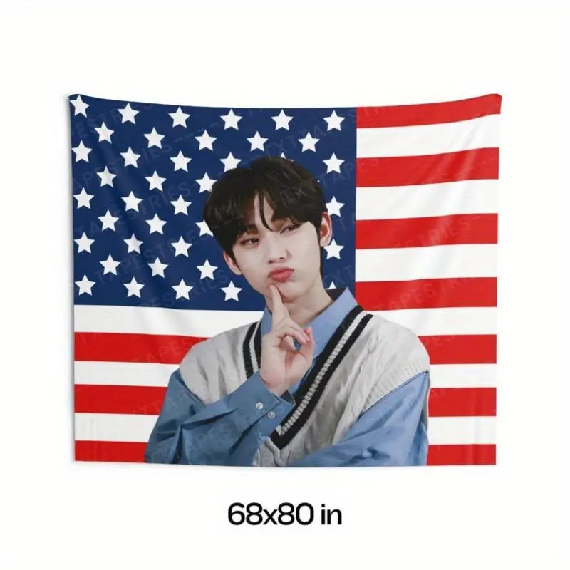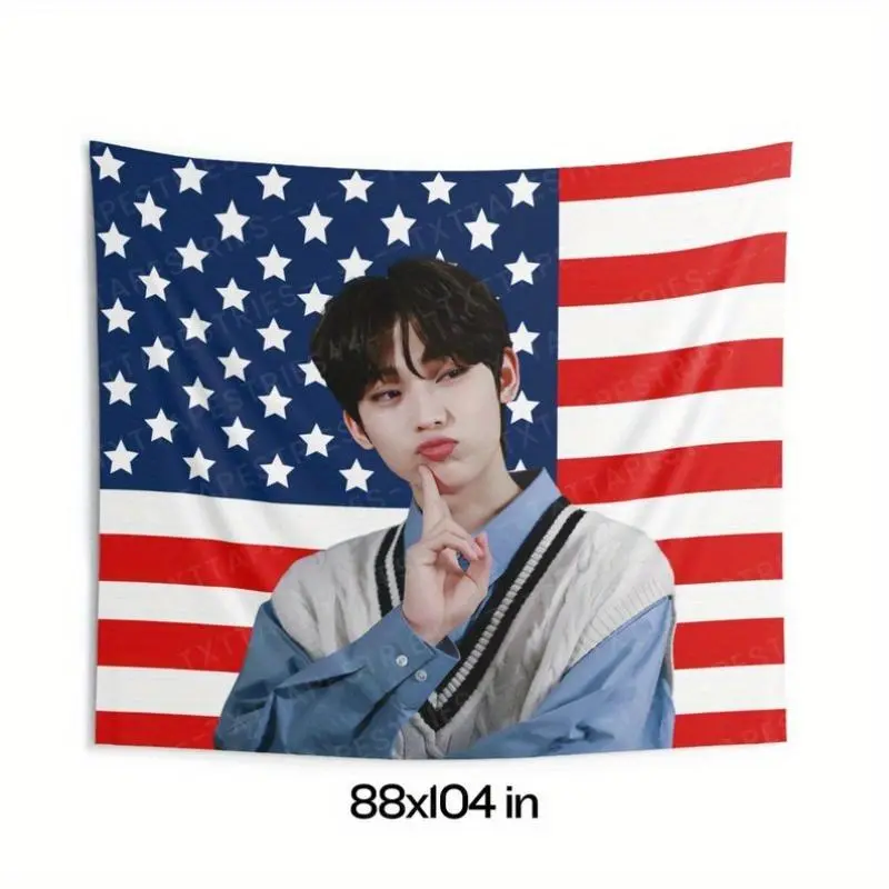 1pc Sunoo Cute Pose American Flag Banner - Polyester, 26x36 Inches, Walk the Line Design, World Tour 2025, Kpop Fan Flag, Concert Banner | Vibrant Print | Durable Polyester, Sunoo Concert Banner