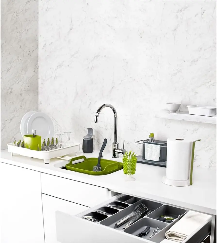 ✨ Joseph Joseph DrawerStore offers a unique design that creates more space in your kitchen drawer. This compact utensil organizer features stacked compartments for different silverware. It includes cutlery icons for easy identification, fitting up to 24 pieces of cutlery. Save space by condensing and organizing your silverware efficiently.