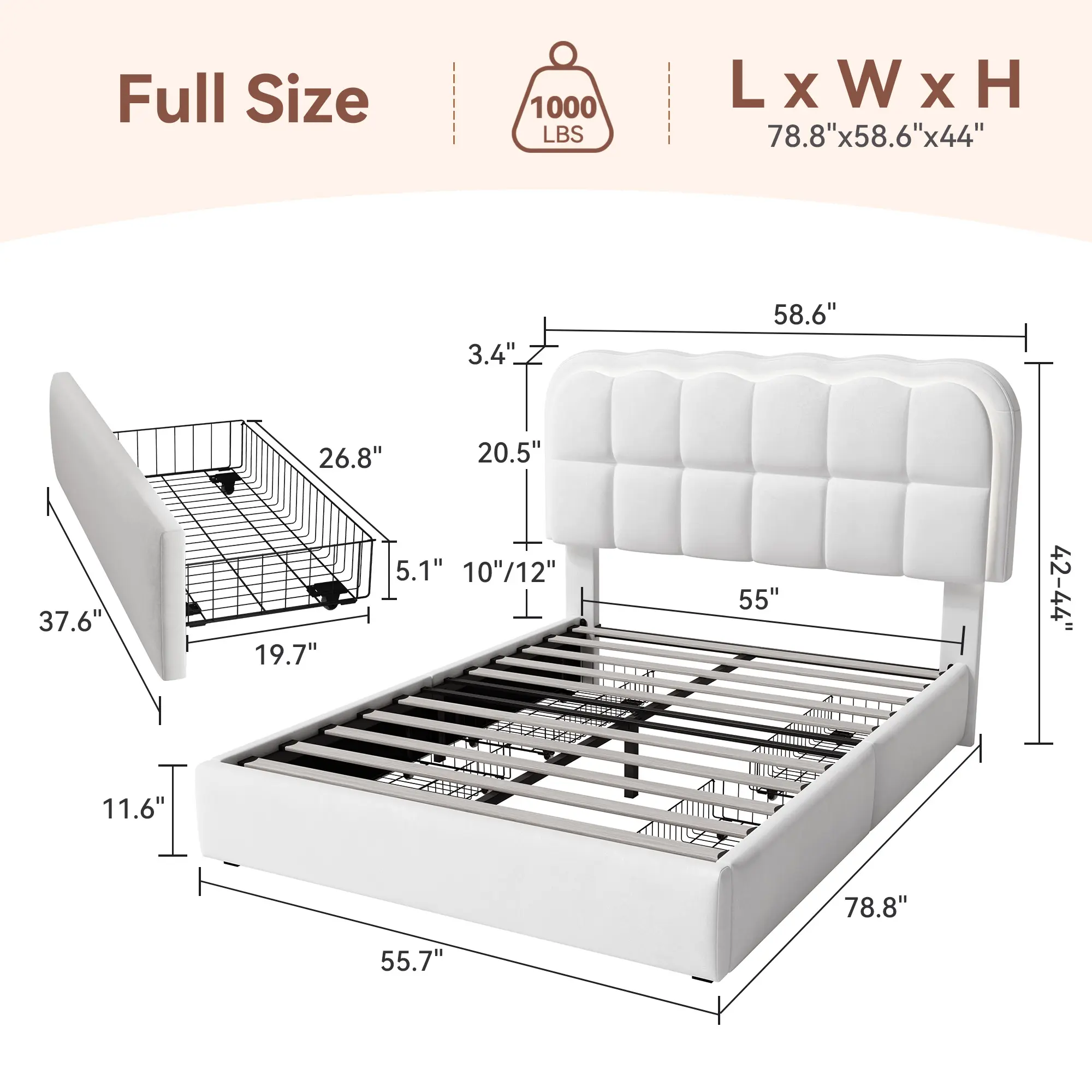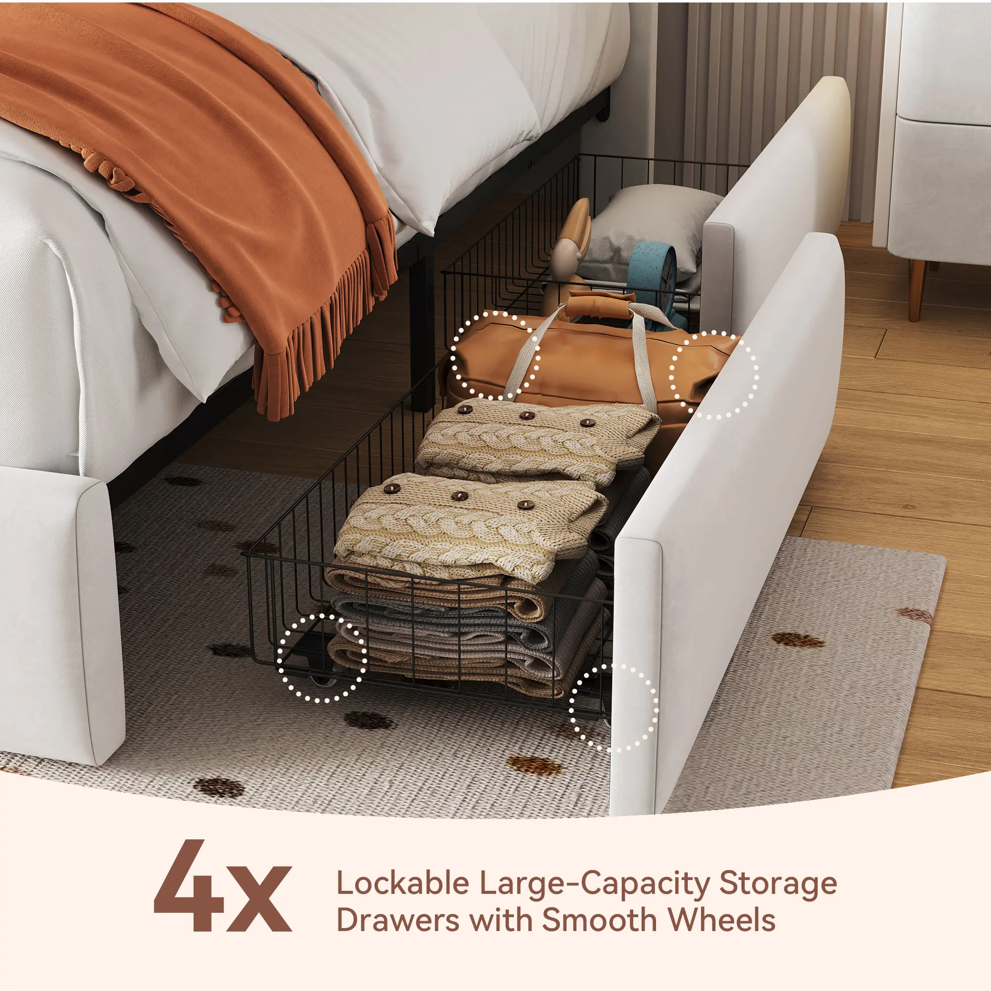 ·4 Extra-Large Drawers: Maximize space with these drawers under the bed.