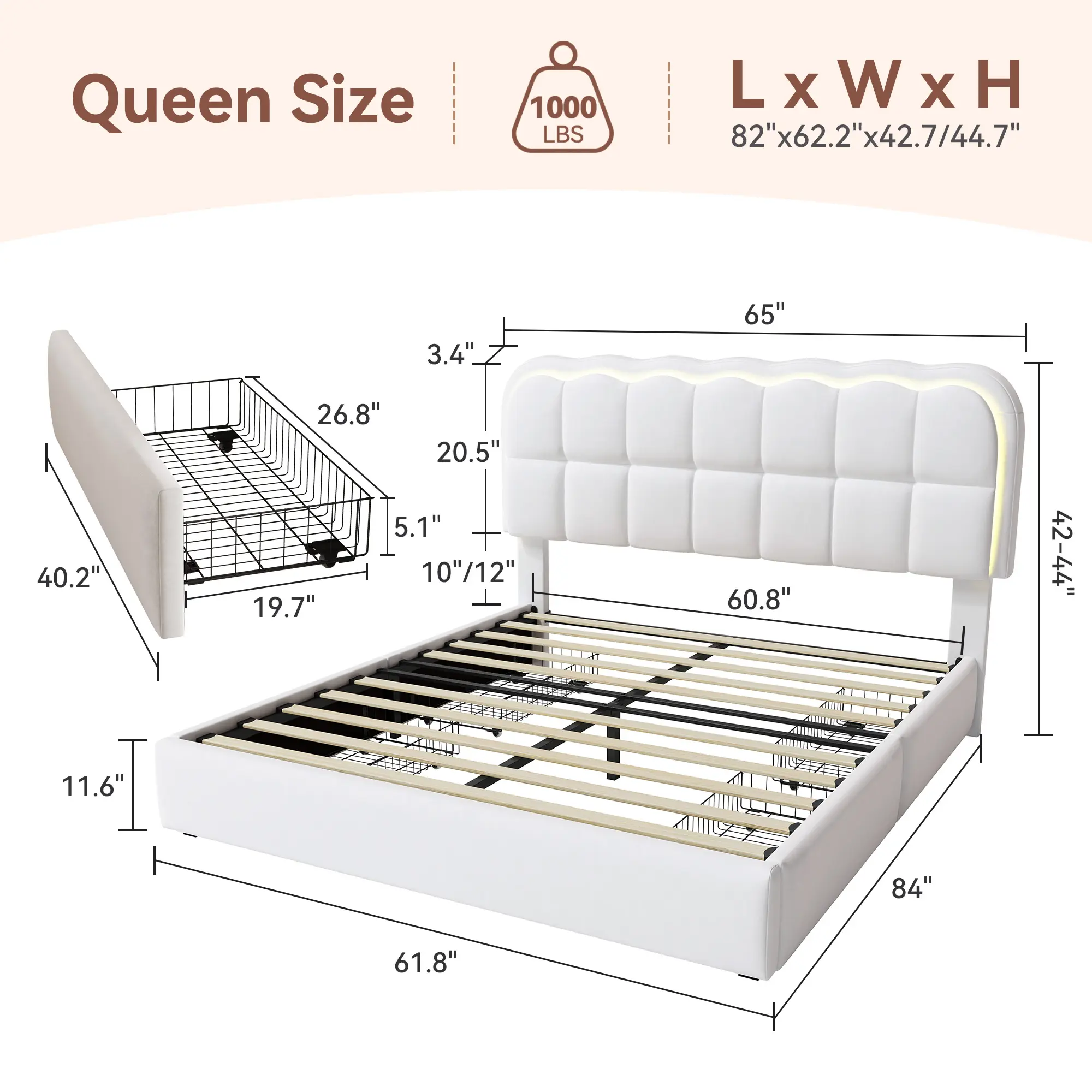 ✨ Queen Bed Frame with LED Lights ✨