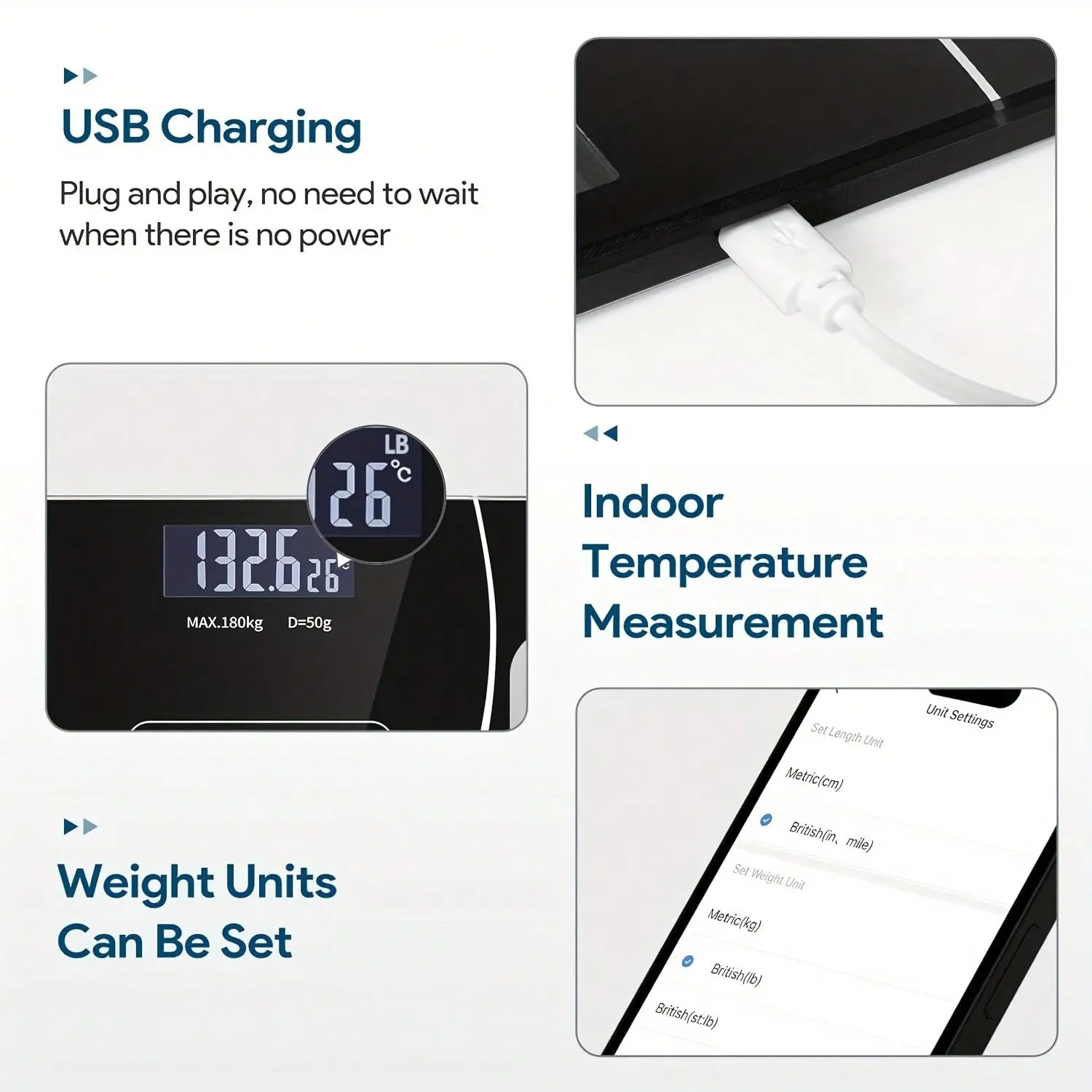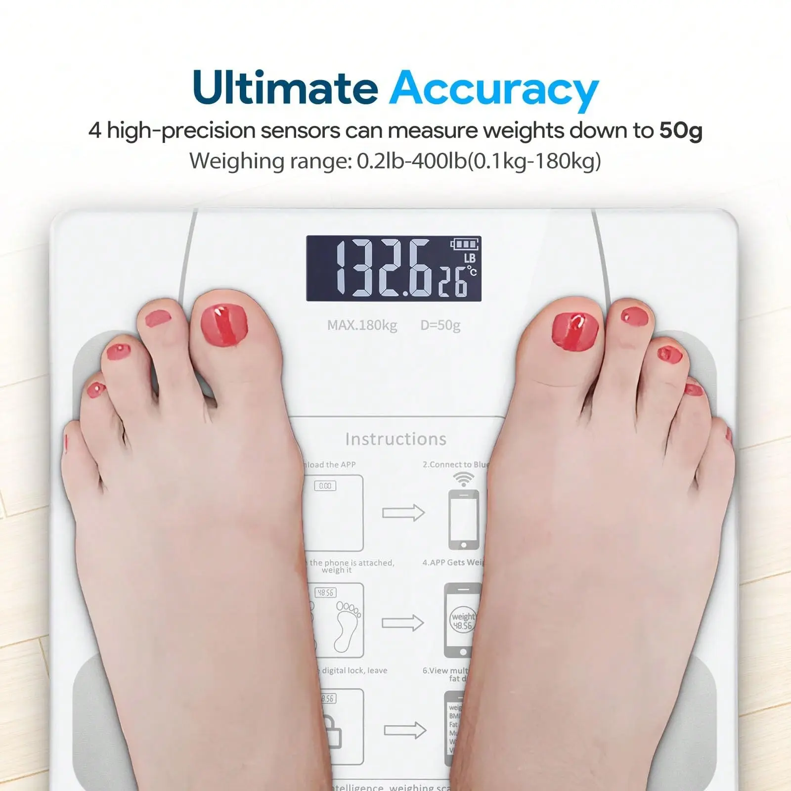 Digital Bathroom Scale, Home Scale, 396 Lb Capacity, High-Definition LCD Screen With Temperature Reading (Switchable Between Kilograms And Pounds), Extra-Wide Weighing Pan, Accurate Weighing.