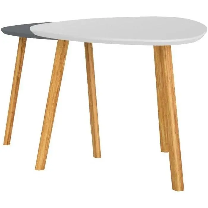 Nesting Triangle End Table,Set of 2 SideTable Modern Minimalist Coffee Table for Living Room, Balcony in White & Grey