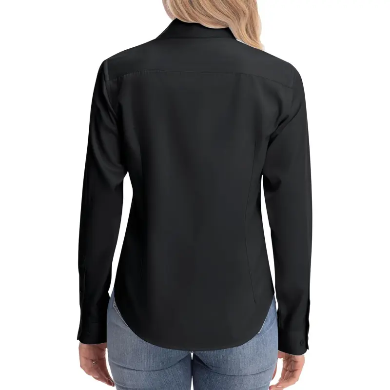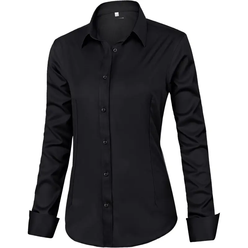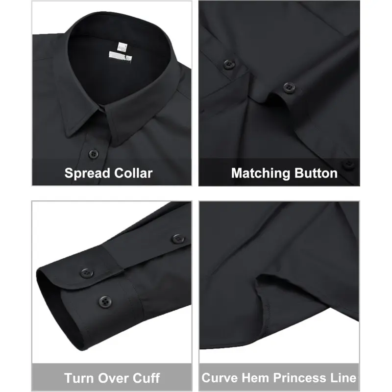 Material: Our work shirts for women are made from 65% Cotton, 30% Polyester, and 5% Spandex, soft and comfortable, not easy to wrinkle, simple ironing, lightweight and breathable, it has a nice silky drape feeling against your skin gently Features: Classic stand-up collar button-down shirt, slim waistline, wide collar, curved hem, and cuffed sleeves lapel cuffs, Solid color, regular fit, the style is also updated, part of the style is inside the collar with a collision design, the spread collar with a polka dot print all over makes these business casual clothes for women classic yet elegant Occasion: The dress shirts for women are versatile, suitable for business, office, casual, dating, daily wear, work wear, and more occasion; fits any season, easy to match, also it's the perfect gift for families and friends Tips and Note: Machine or hand wash. Wash dark colors separately, do not bleach, tumble dry low, line dry in shade, and low iron if necessary. Our casual shirts for women are made based on USA size standards. Please choose the correct size from the size chart on the image to the left (Not the Size Chart) Customer Service Commitment: If you encounter any issues with sizing or are unsatisfied for any reason, please don’t hesitate to reach out to us. We’re here to help and make it right