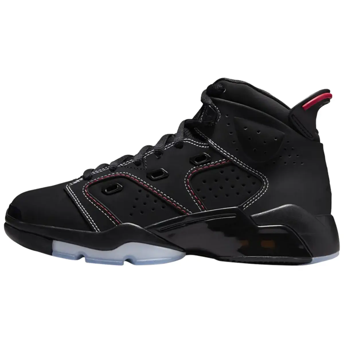 Command the court with the Air Jordan 6-17-23 GS "Bred," a high-status hybrid architect that reinterprets radical elements from the AJ6 and AJ17 through a clinical, performance-charged lens. Featuring a premium landscape of tactical black nubuck and synthetic leather, the design is defined by its streamlined anatomical profile and specialized contrast stitching in white and red that provides a sharp technical strike. Grounded by a clinical black midsole housing visible Air cushioning for elite impact protection and a translucent ice-blue outsole, this release successfully pairs the aggressive DNA of championship-era Chicago heritage with a sophisticated, stealth-saturated aesthetic.