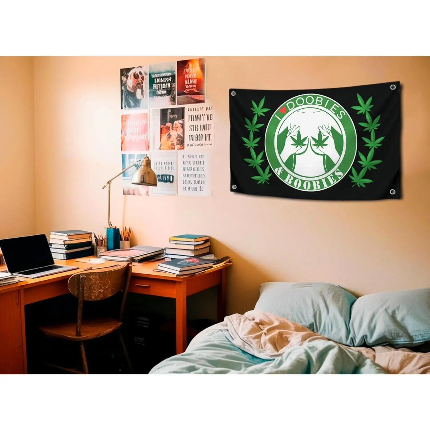 60in x 40in Tapestry t I Love Doobiess And Boobies Single Sided Flag - Cool Funny Flags For Room Guys - Funny Polyester Tapestry Cool Wall Flags for Decor College Dorm Room Guys - Man Cave Frat Flag