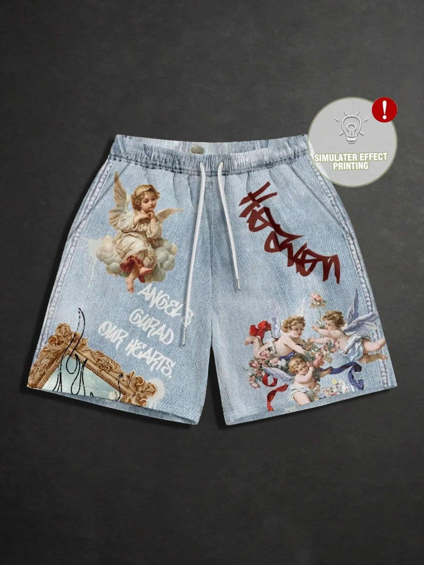 【Retro Angel Print】: Featuring a unique retro angel print, these shorts stand out with their eye-catching graphic design.