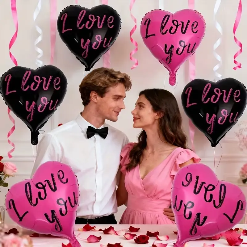 5pcs 18 Inch Rose Aluminum Heart Decorations, Perfect for Proposals, Weddings, Anniversaries, Romantic Scene Setup