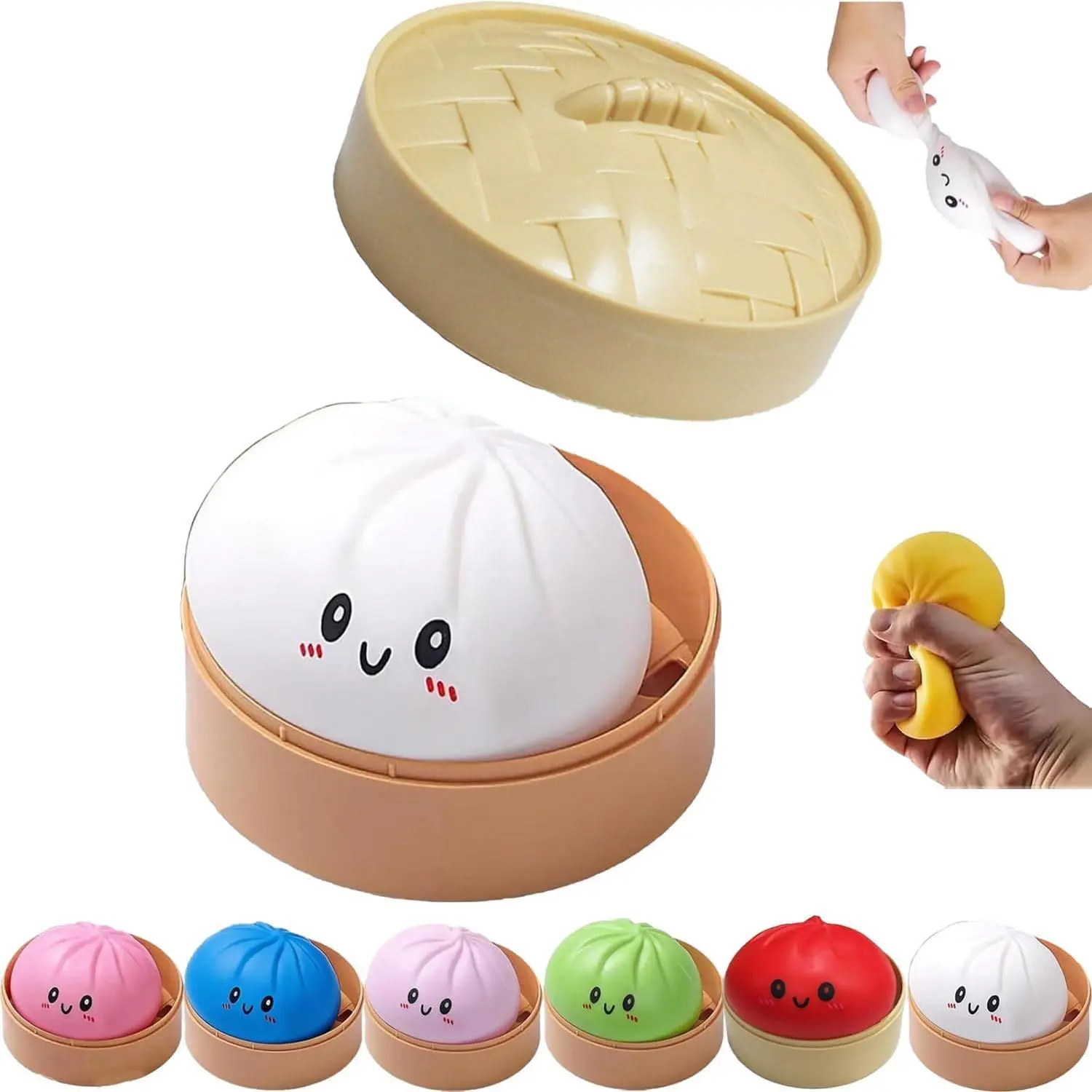 BINOK Dumpling Squishy Toy, Dumpling Squishy Mystery Box, Easter Basket Stuffers, Squeeze Dough Ball Stress Relief Hand Toys with Food Steamer Stretchy Desk Toys (Multicolor)