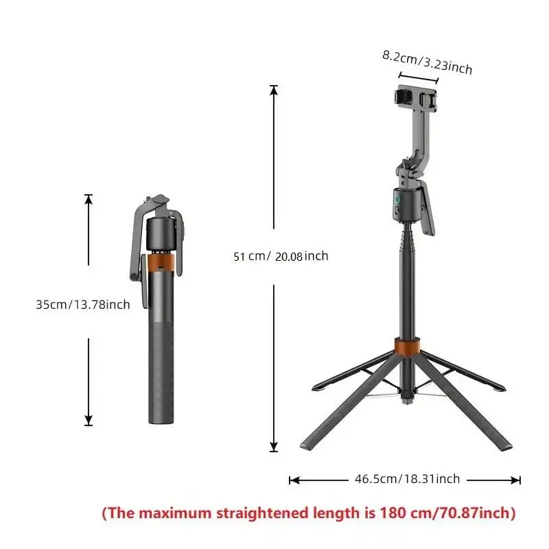 【360° Rotation】: Easily capture every angle with the 360-degree rotatable selfie stick tripod.