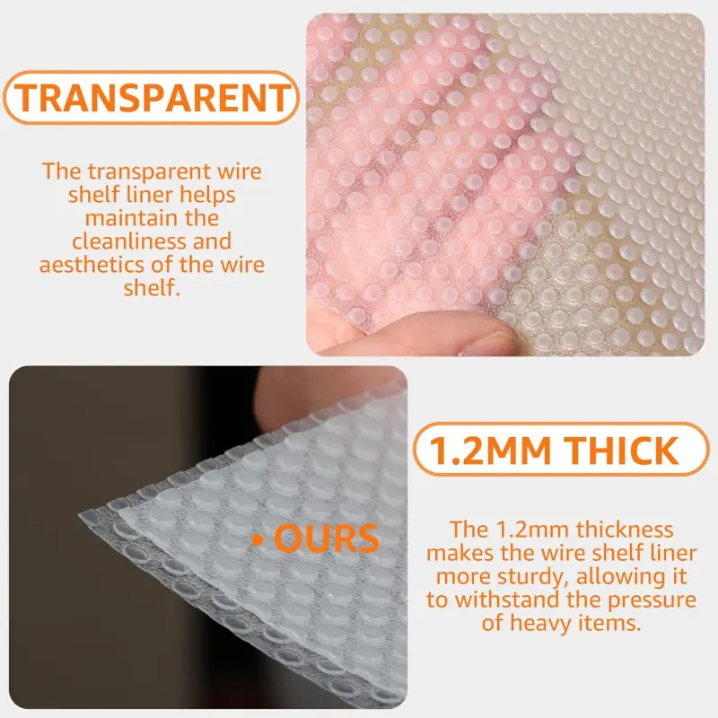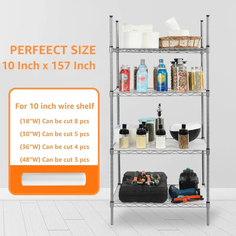 Pantry Shelf Liners for Wire Shelving - 1.2 MM Thick Easy to Cut Metal Liner - Clear Waterproof Plastic Drawer Liner - 10" W x 157" L Translucent Kitchen Cabinet Mat for Shoe Rack