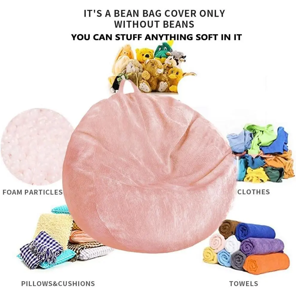 Bean bag cover can hide all kids' stuffed animals and all soft items, creating a fun bean bag chair.