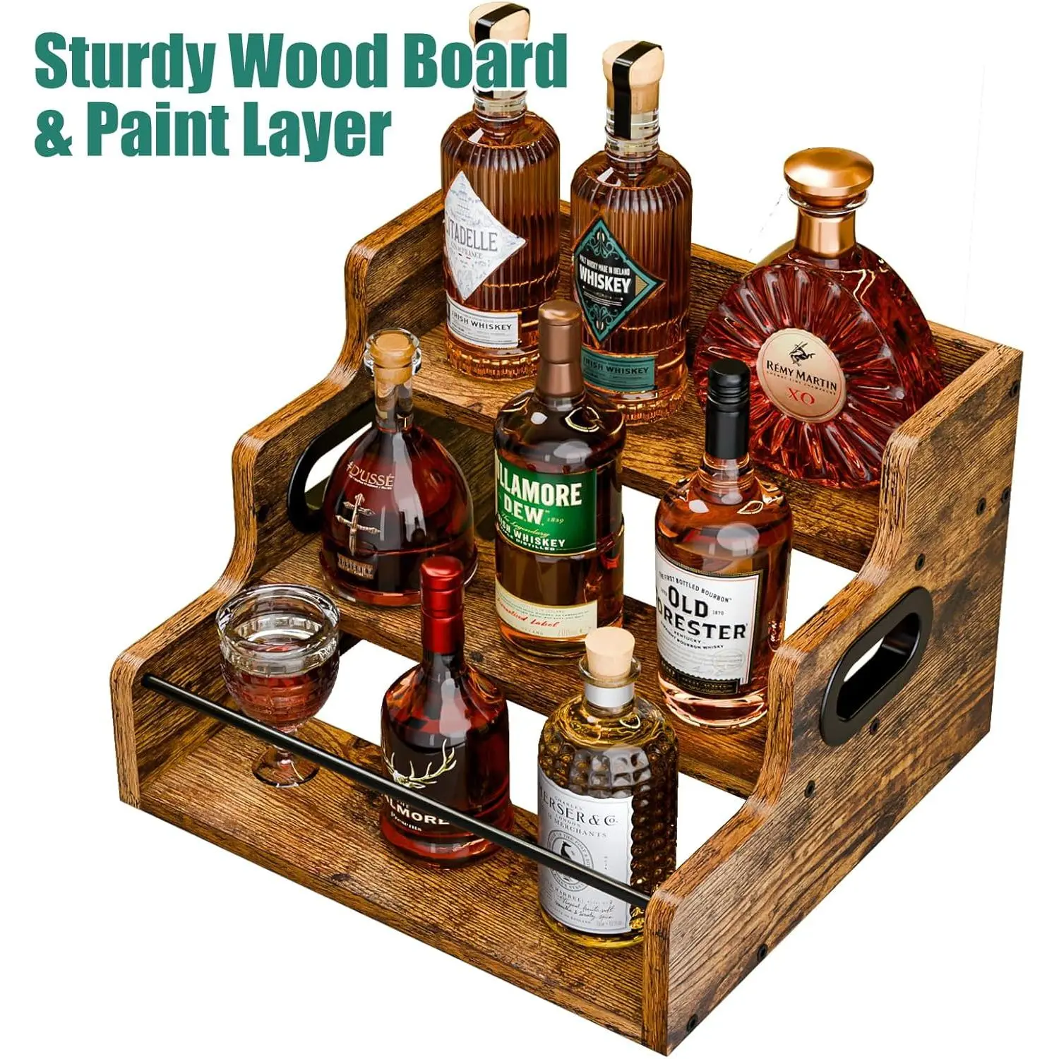 Liquor Bottle Display Shelf, Coffee Syrup Rack Organizer, 3 Step Countertop Liquor Wine Rack, mini bar,liquor cabinet, Home Retro Bar Shelf Stand for Liquor Whiskey, Spirits