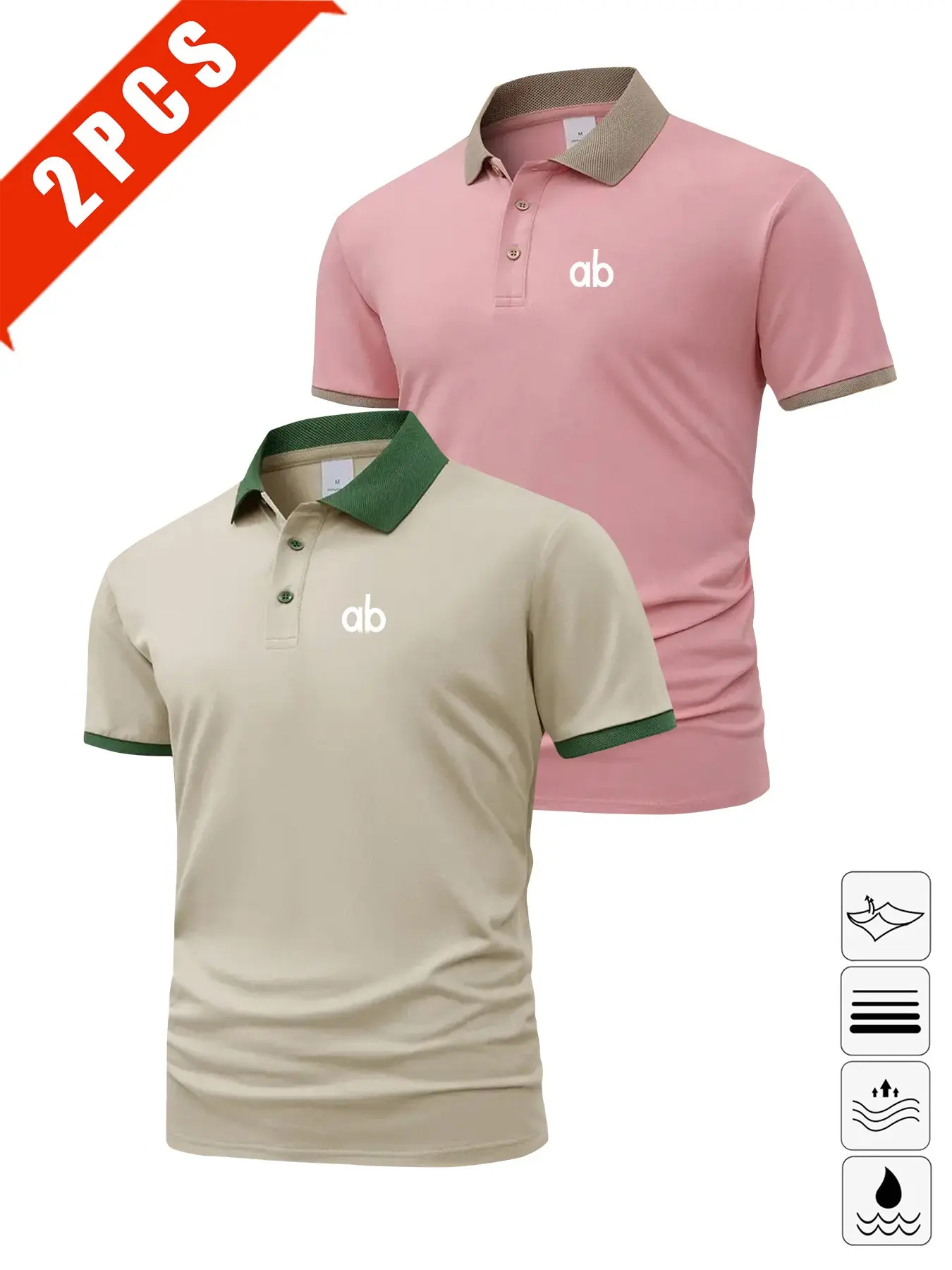 Men's Summer Polo Shirts, 2-Pack Short Sleeve Print Tees, Breathable Casual Golf Wear, Slim Fit Multi-Color Sportswear, Perfect Gift