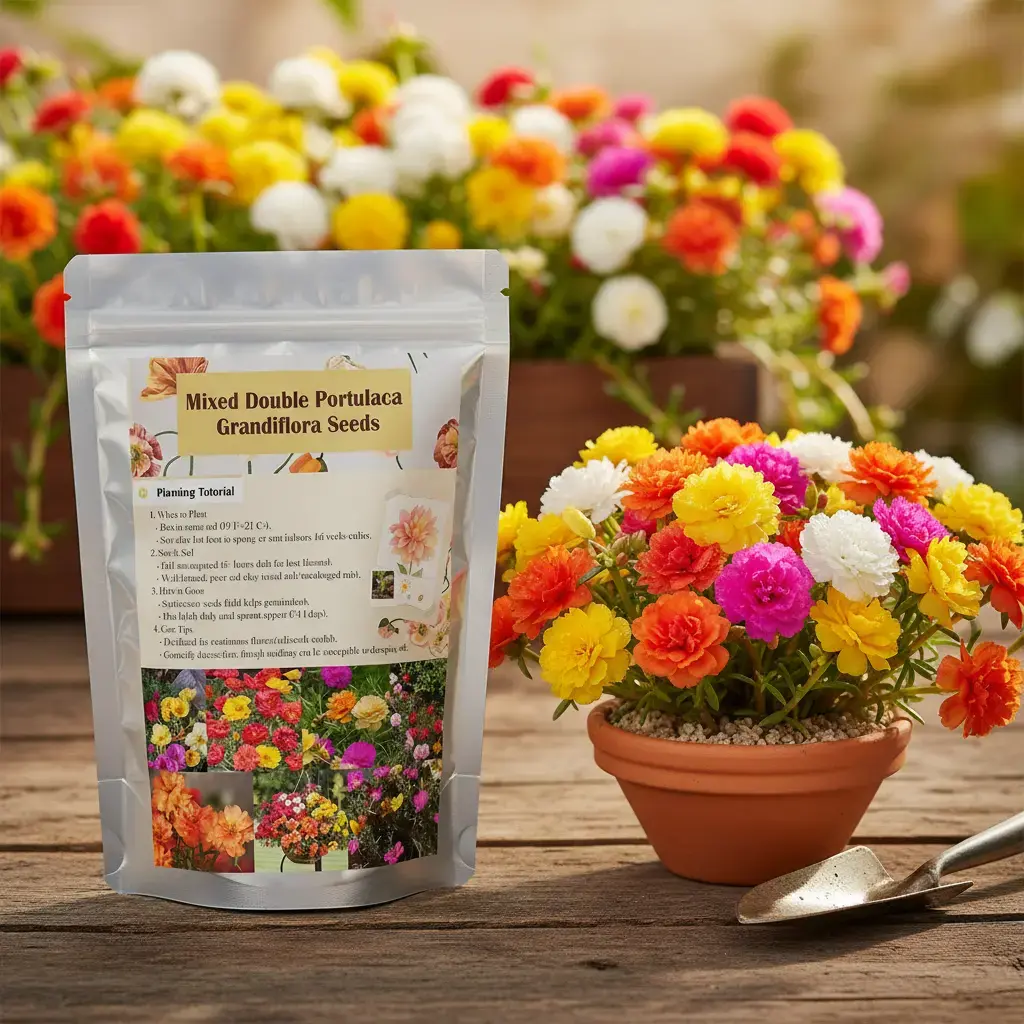 10000 +PCS (Moss Rose) Seeds -Mixed Double Portulaca Grandiflora Seeds Planting Ornaments Perennial Garden Simple to Grow Pots Gifts