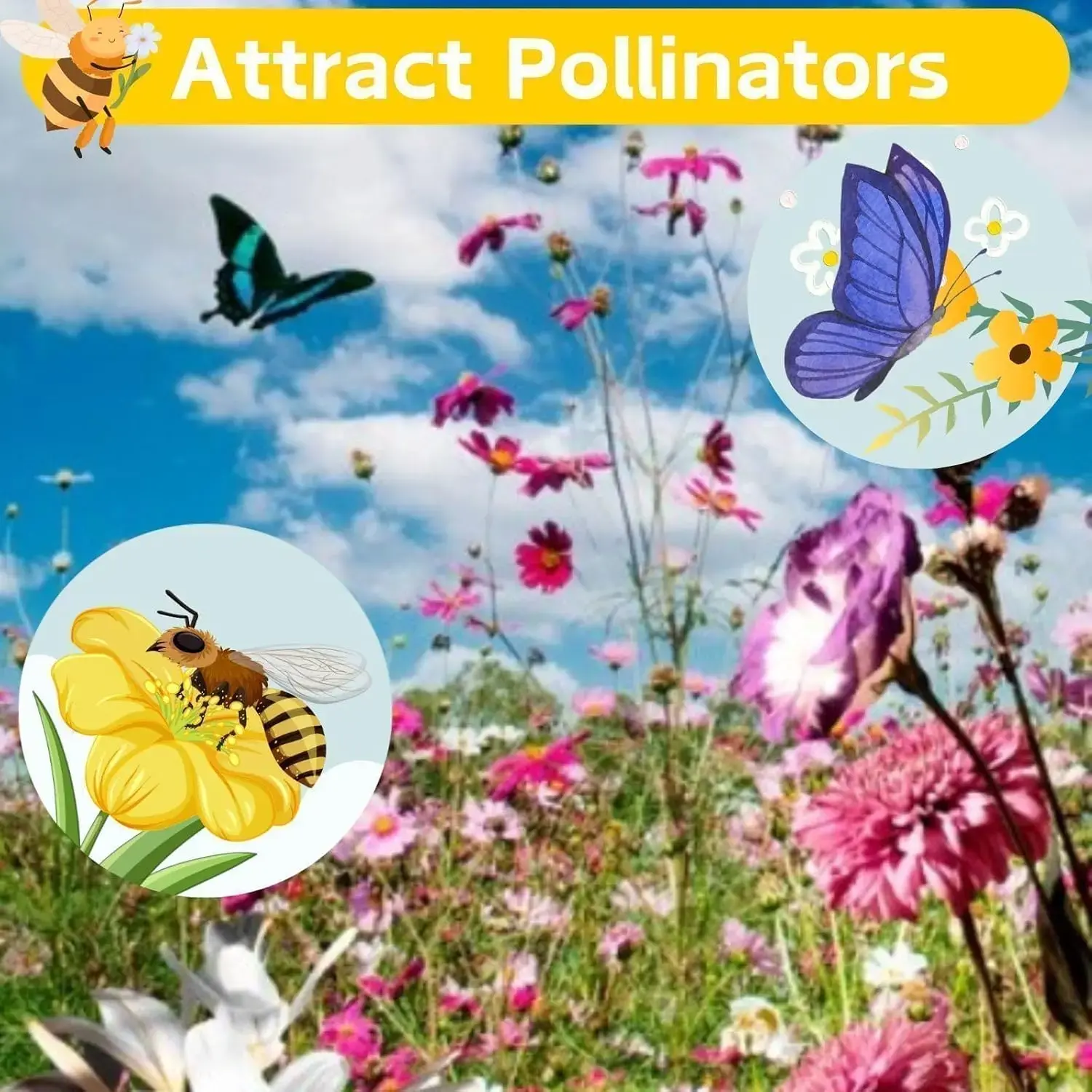 Wildflower Seeds Bulk Seeds Mix 3oz (Pure Seeds - No Filler) Attracting Bees, Birds & Butterflies 24 Varieties for Flower Garden