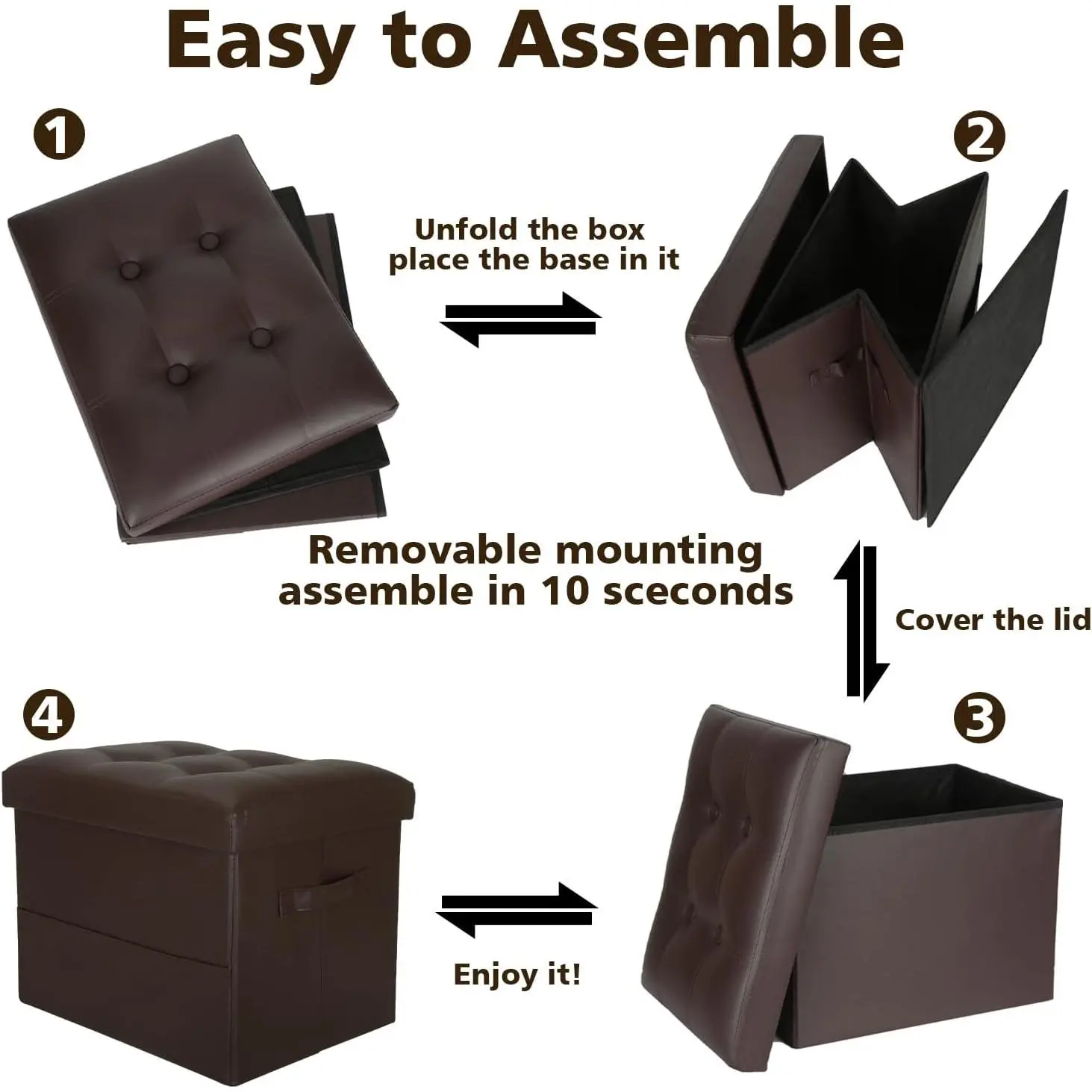 When you put the storage ottoman in the bedroom to use, you can put your cell phone, air conditioner remote control on it, and also can store pillows, blankets and so on.