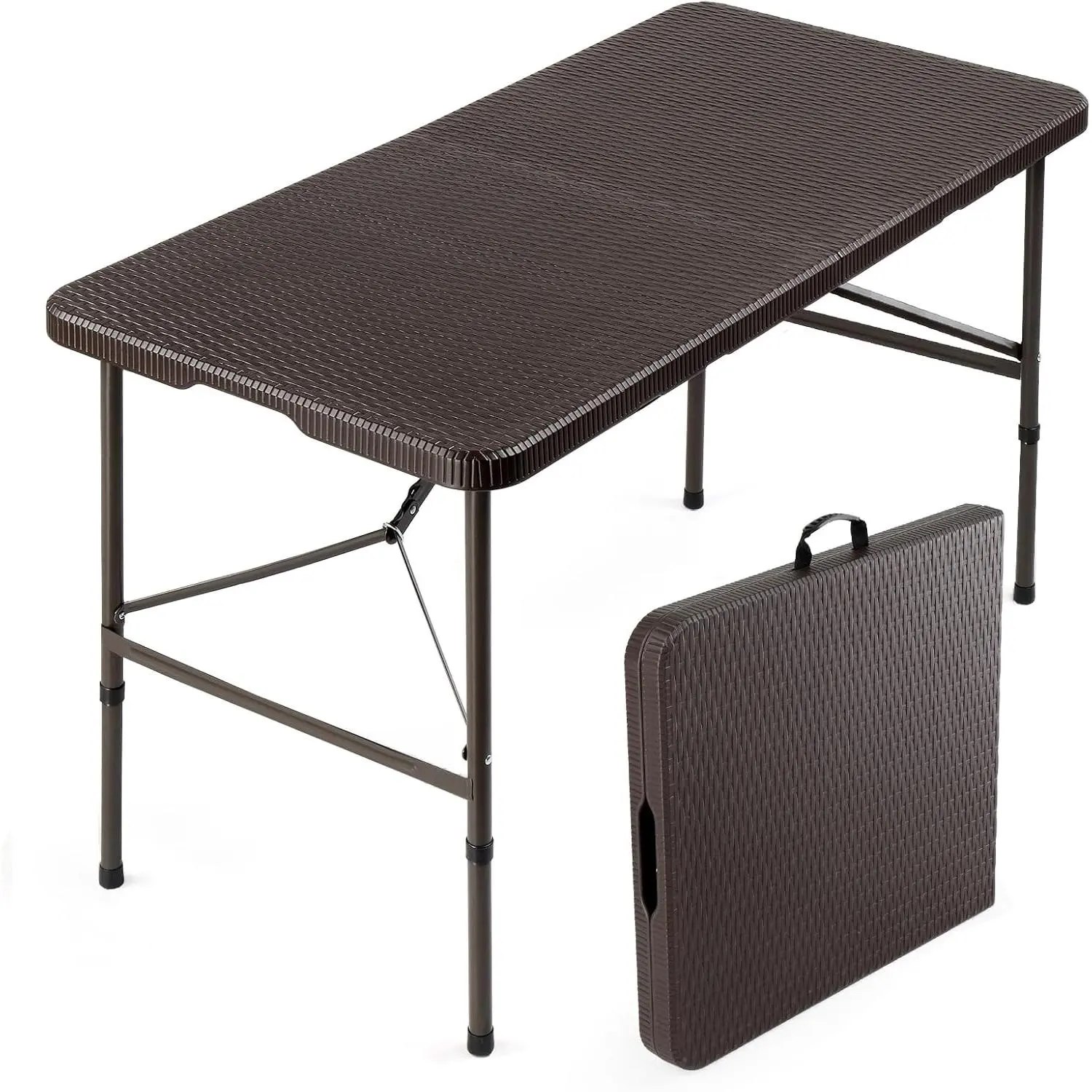 6 Foot Plastic Folding Table Portable Long Table for Indoor Outdoor Use Rectangular with Carrying Handle, Smooth HDPE Tabletop, White
