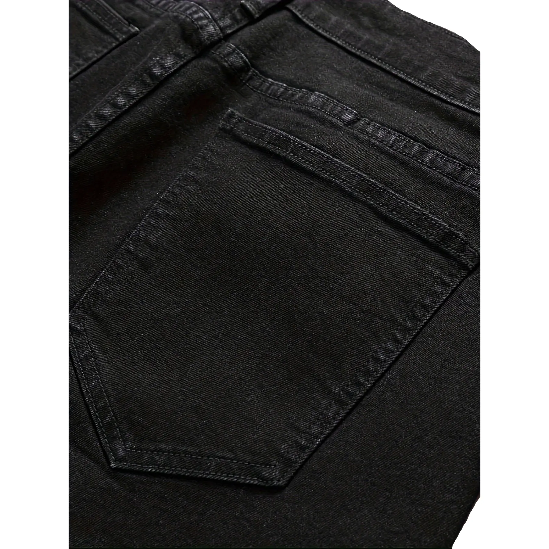 Men’s Black Straight-Leg Jeans with Large Pockets, Y2K Print, European & American Fashion Trend