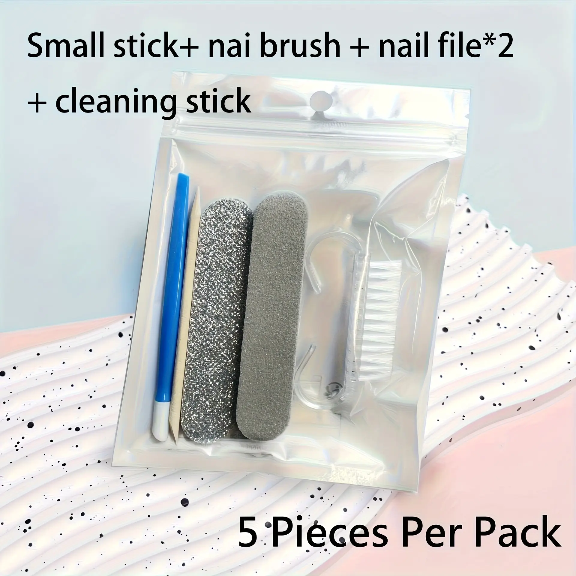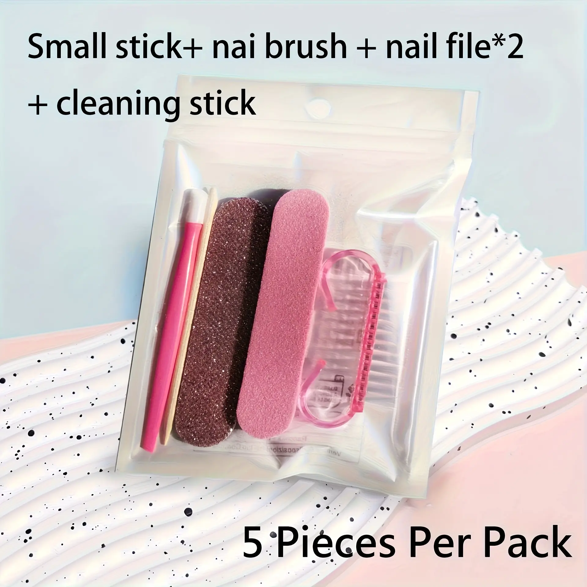 [Manicure Pedicure Set] 5pcs Per Pack, Manicure And Pedicure Set, Mini Nail File And Orange Nail Stick Set, Double-Sided Disposable Nail File, Wooden Cuticle Pusher, Nail Cleaning Tools, Nail Stick, Nail Art Brush