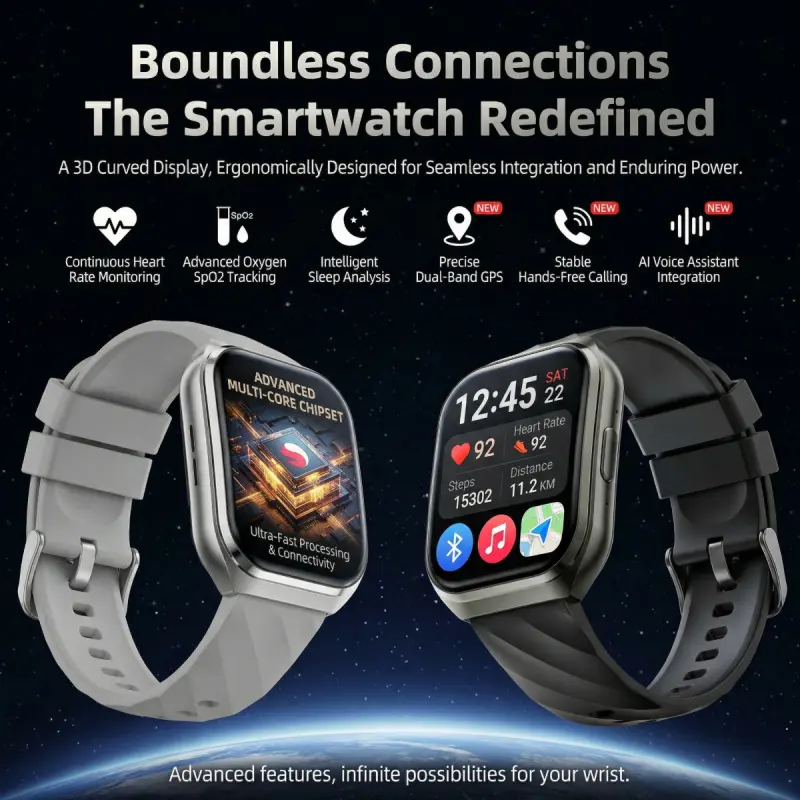 MT66 Smart Business Fitness Watch 3D Curved Display Custom Watch Faces Waterproof Long Battery Life for Work Outdoor Daily Wear