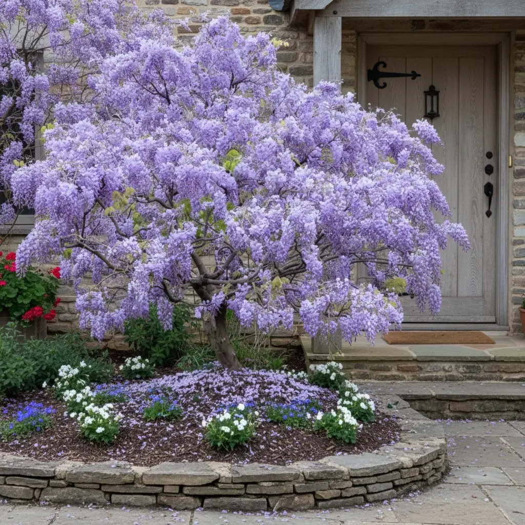 • Cascading lavender blooms in spring