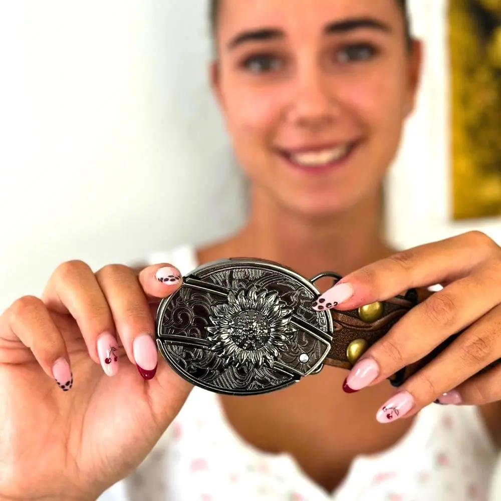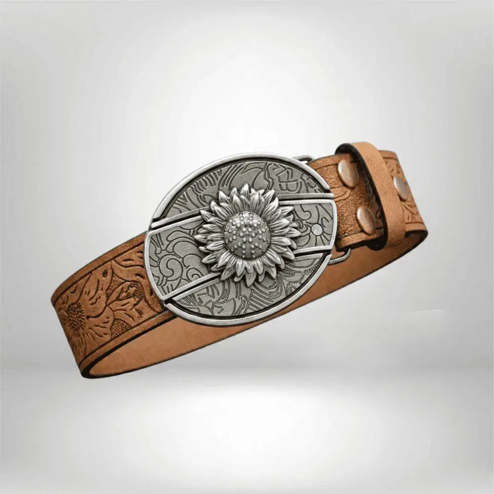 Sunflower Western Women's Belt, Women's Cowboy Belt, can be paired with trousers and jeans, vintage floral engraving design.