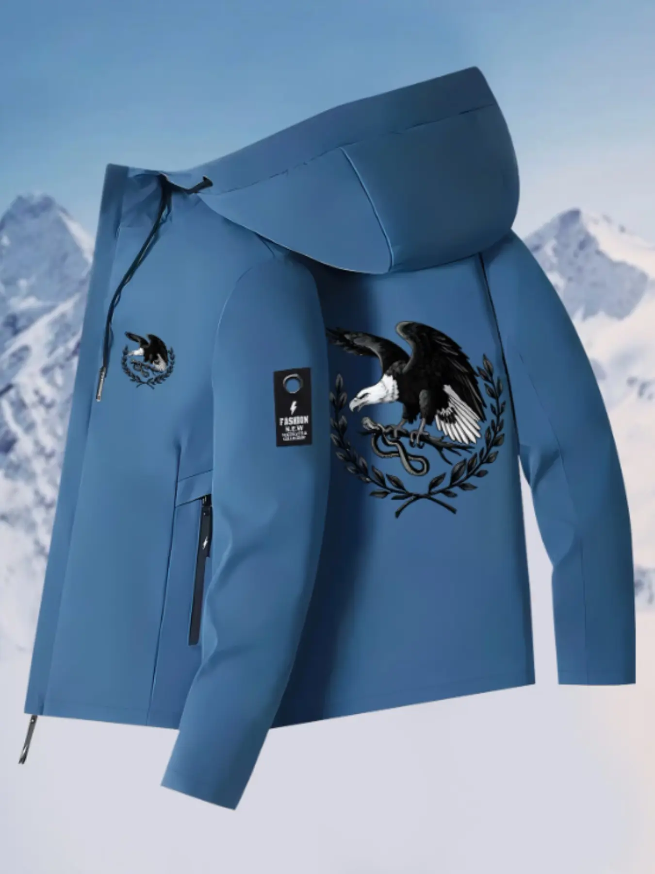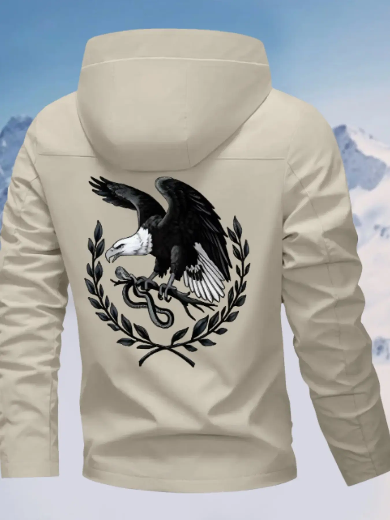 Spring Autumn New Couple Windbreaker, Eagle Snake Print, All-Season Outdoor Hiking Jacket, Long Sleeve Fitted Outerwear for Men and Women