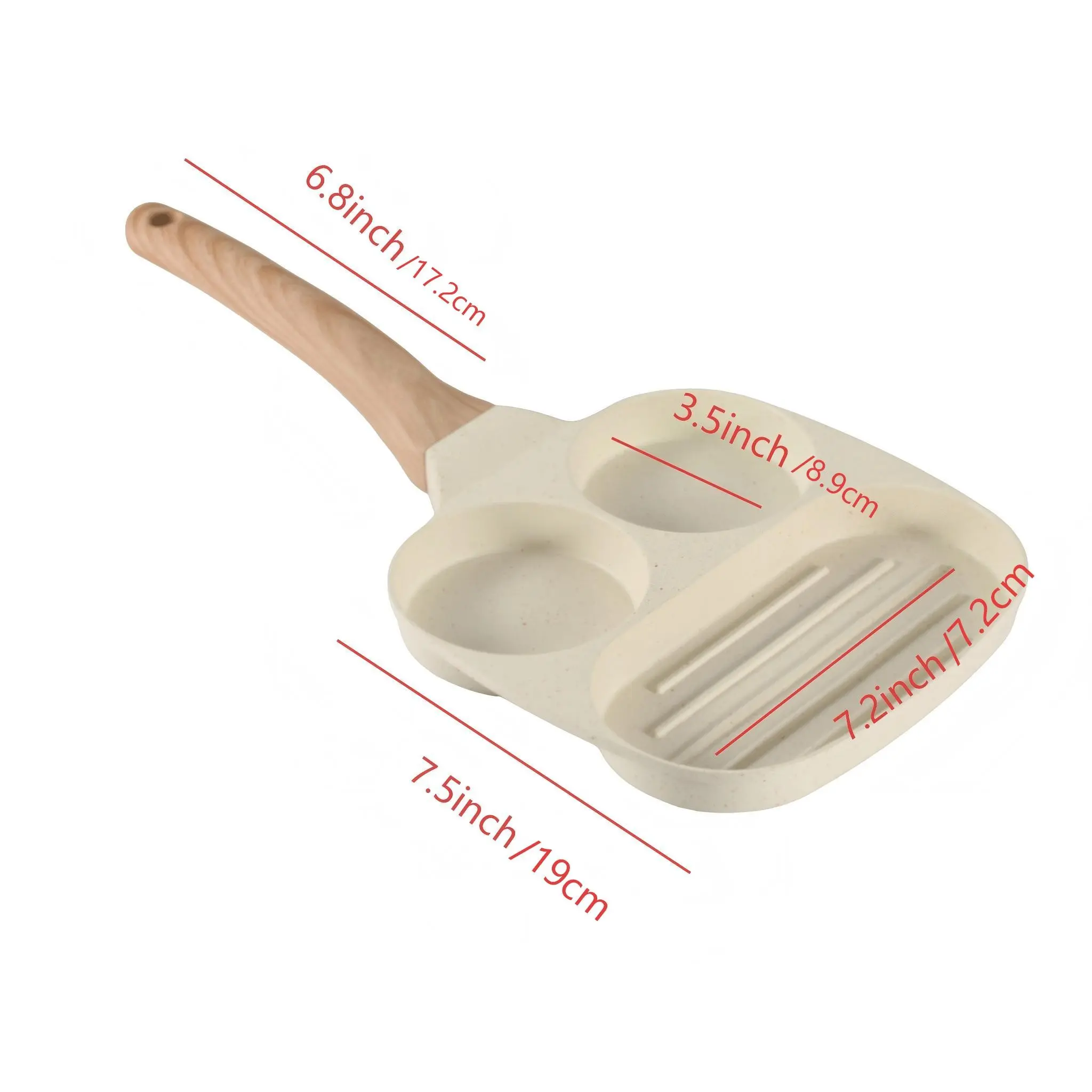Non-Stick Egg Cooker with 4 Holes, Small Breakfast Pancake Pan, Kitchen Utensil for Gas and Electric Stoves, Handle Included