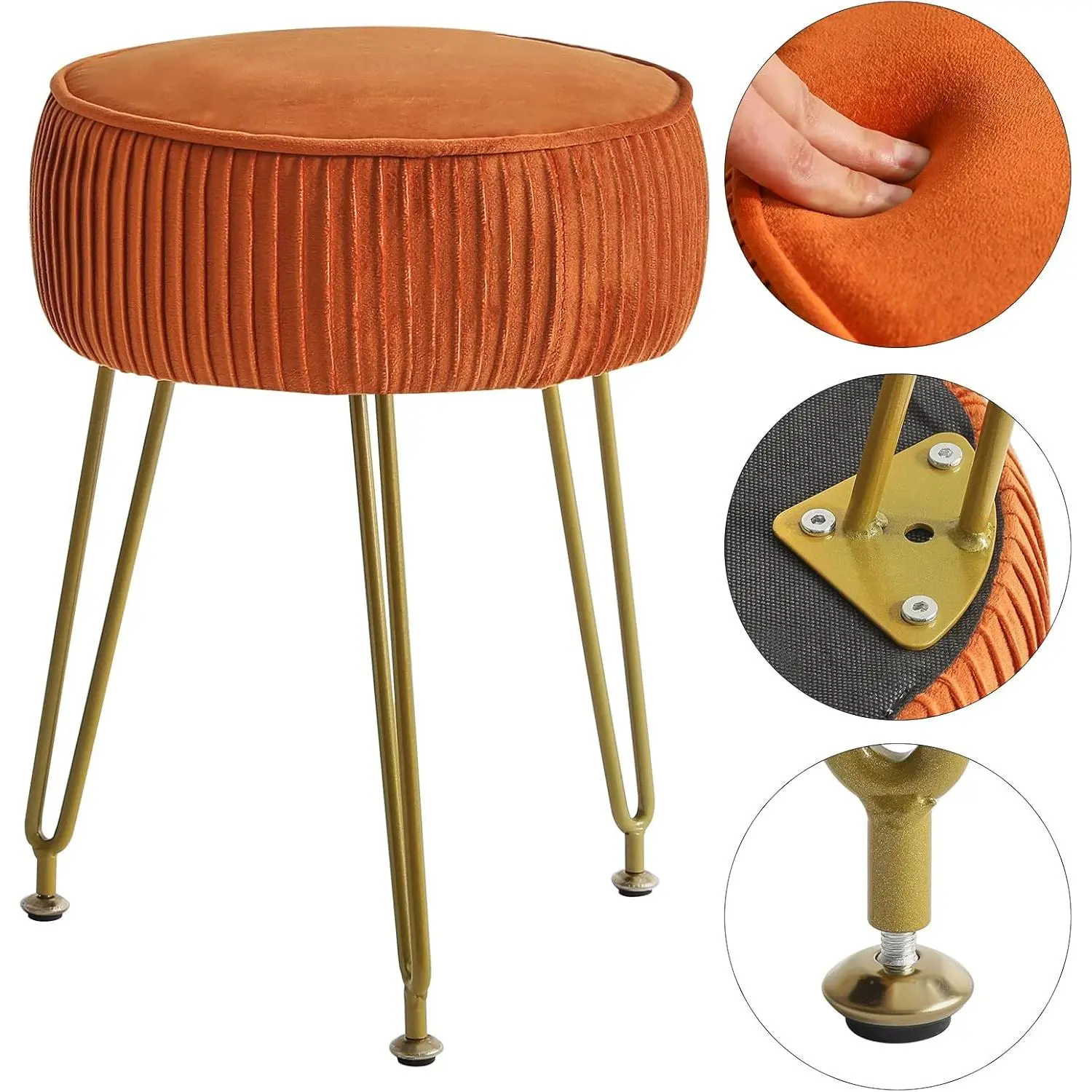 The stool is wrapped by soft, high-quality velvet and filled with memory foam inside, which is soft and comfortable and gives you an unforgettable using experience.