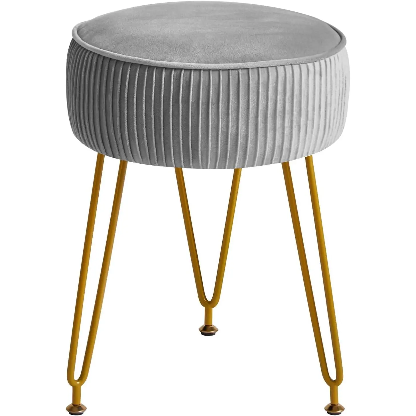 Velvet Round Footrest Stool Ottoman & Makeup Vanity Stool with Metal Legs & Dressing Table Seat