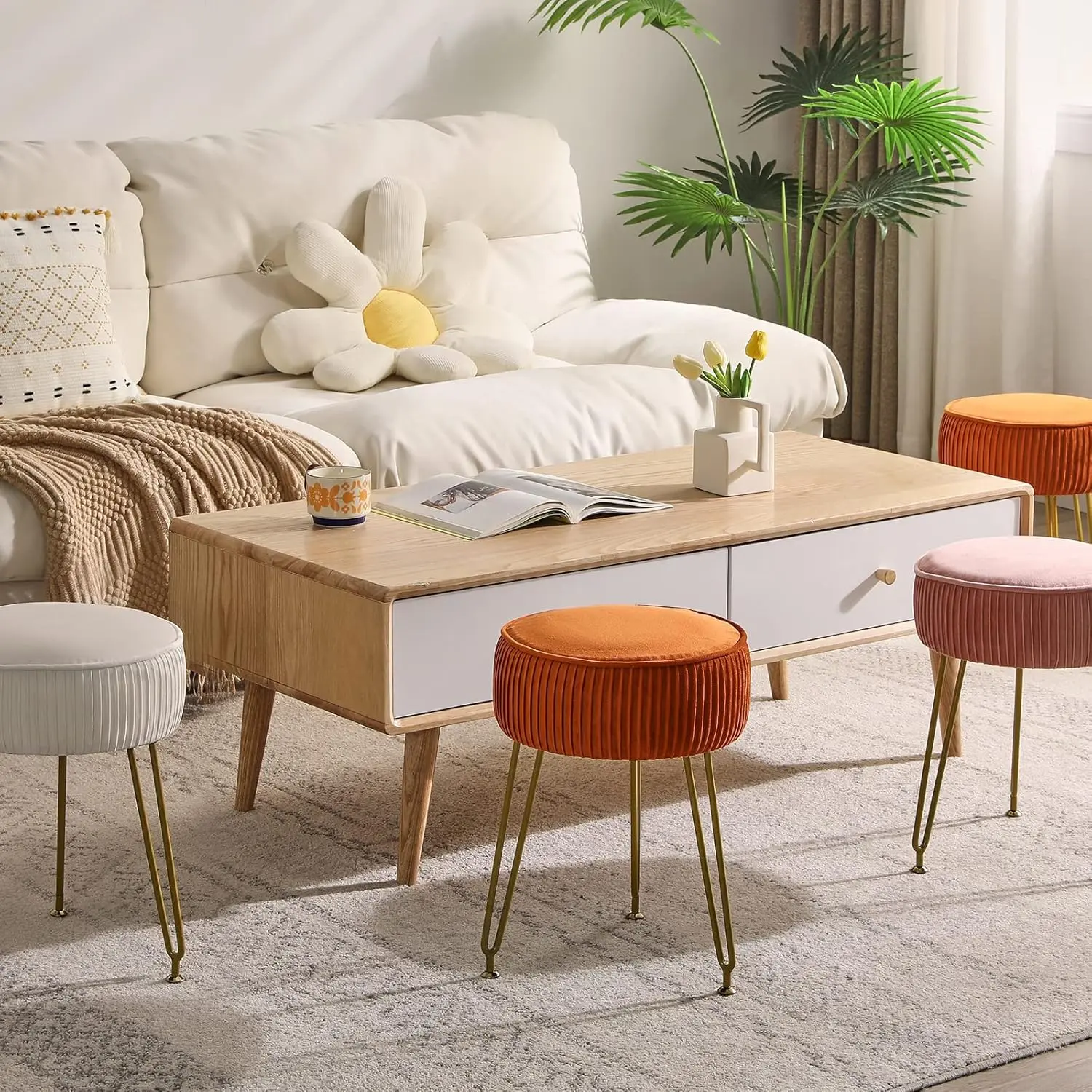 This versatile velvet stool is perfect for any dressing table, modern appeal to any home, adding different colors and a stylish atmosphere to your room.