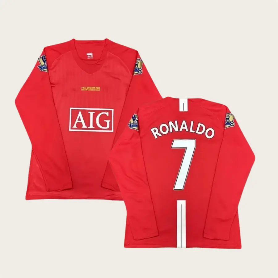 2007 2008 Retro Red Black CR7 Long Sleeved Soccer Jersey