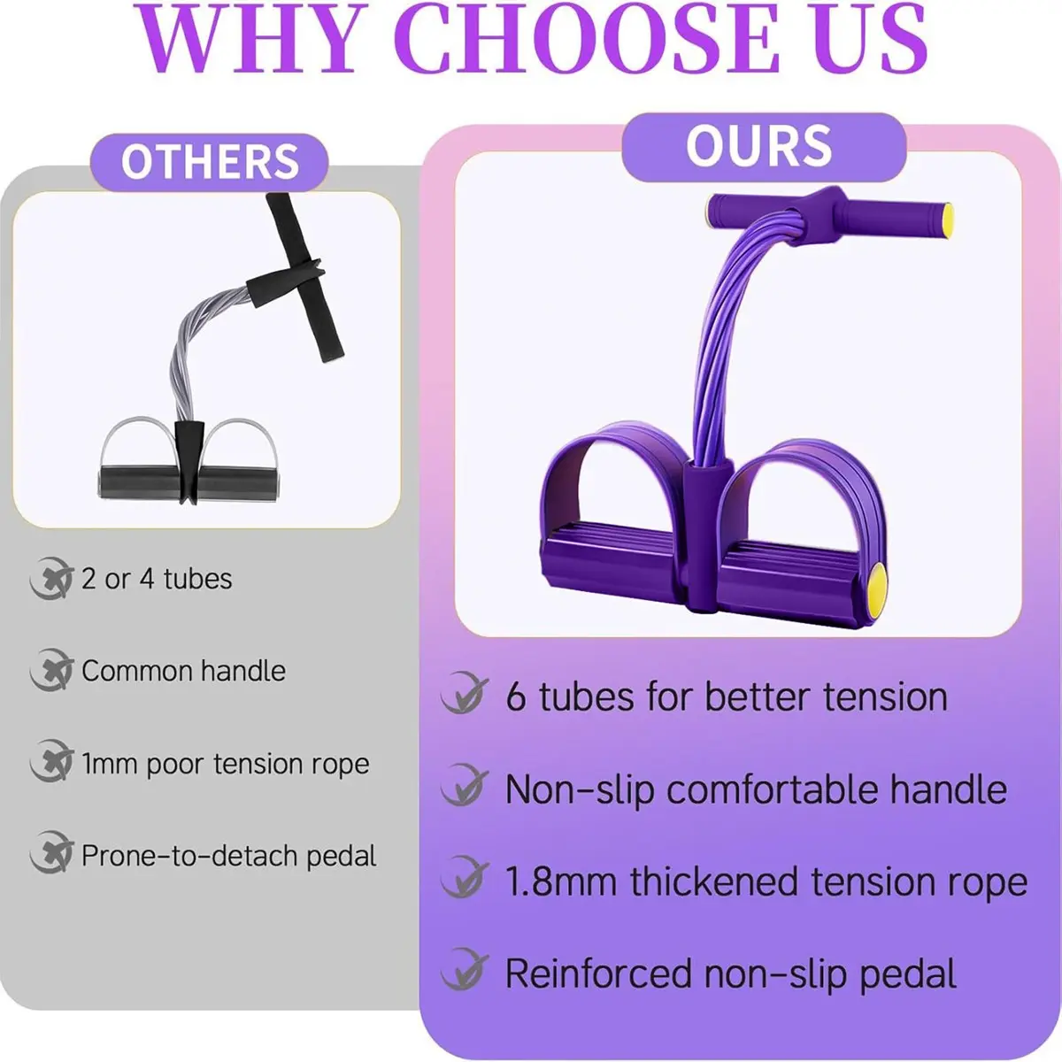 Multifunctional Tension Rope 6 Tube Designs, Gym Accessory Pedals, Ankle Pullers for Training, Leg Pulls, Yoga, Stretching