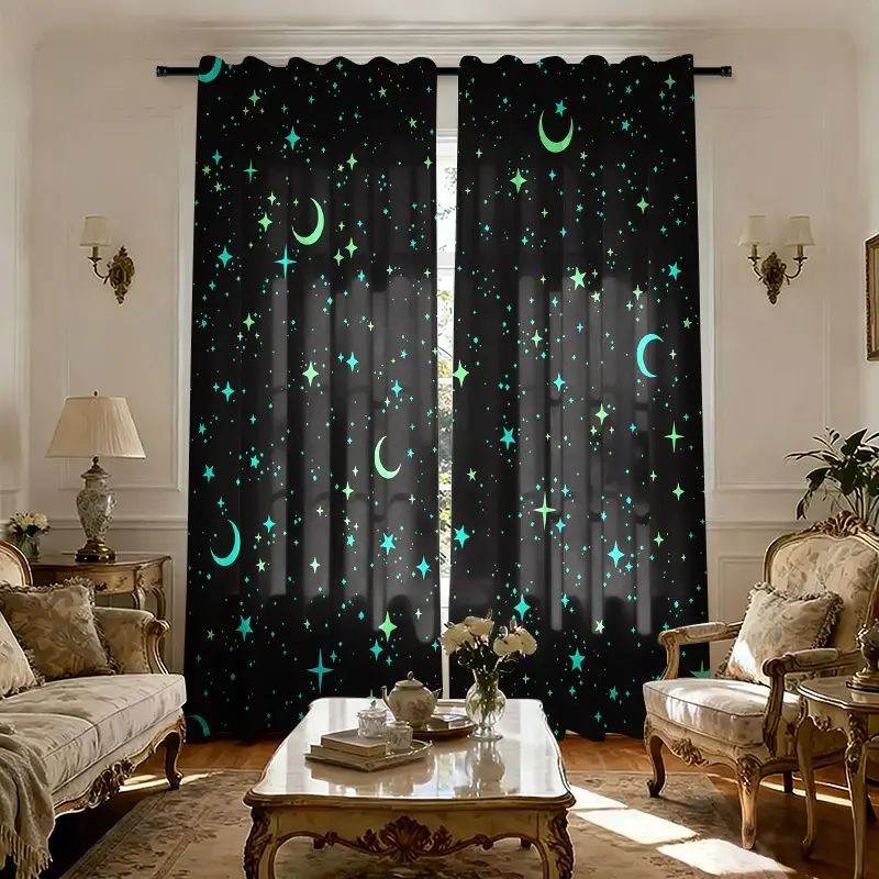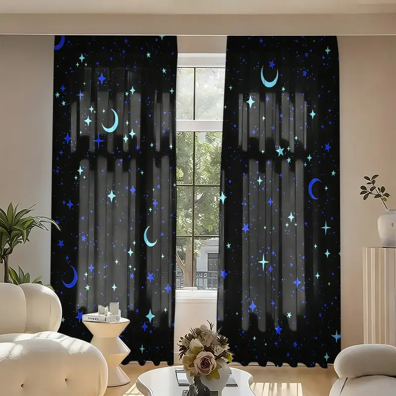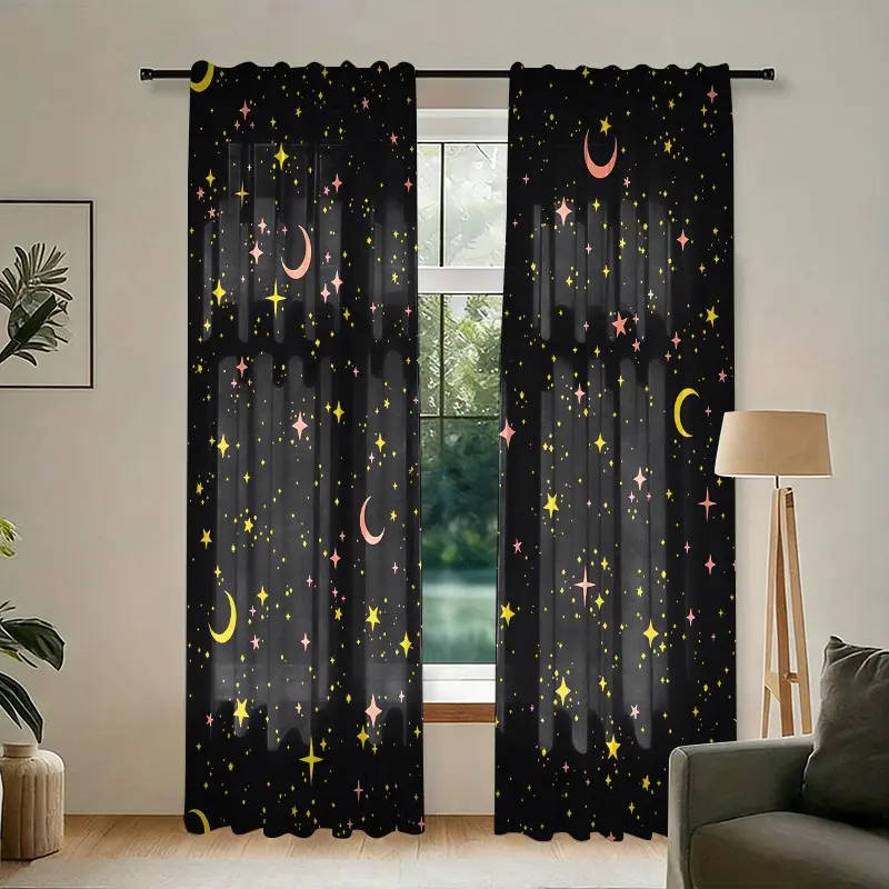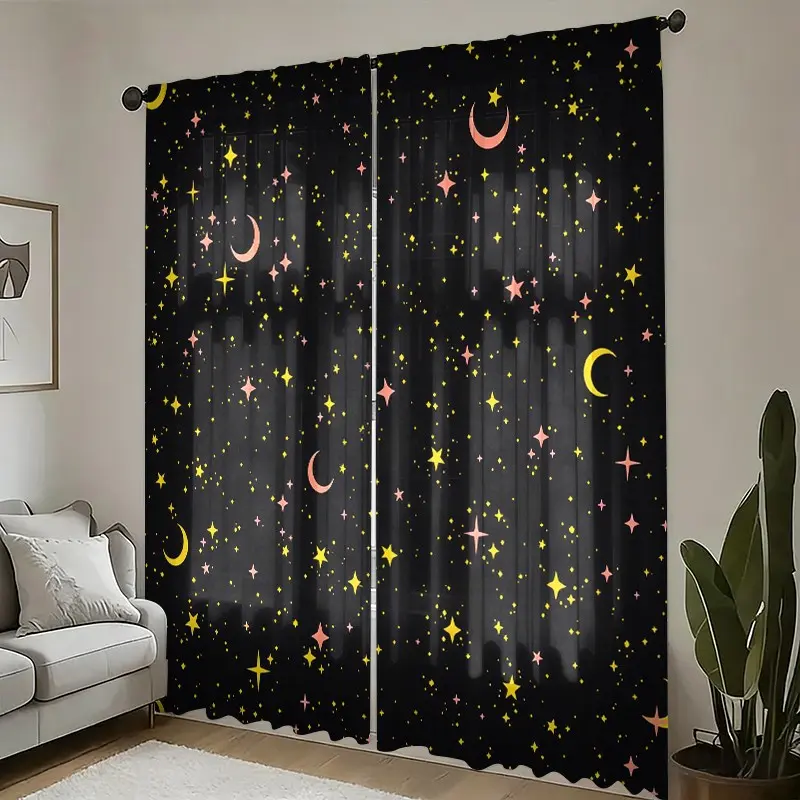 2 pieces of star-patterned curtains, made of polyester with semi-transparent texture, machine washable, suitable for bedrooms, living rooms and home decoration.
