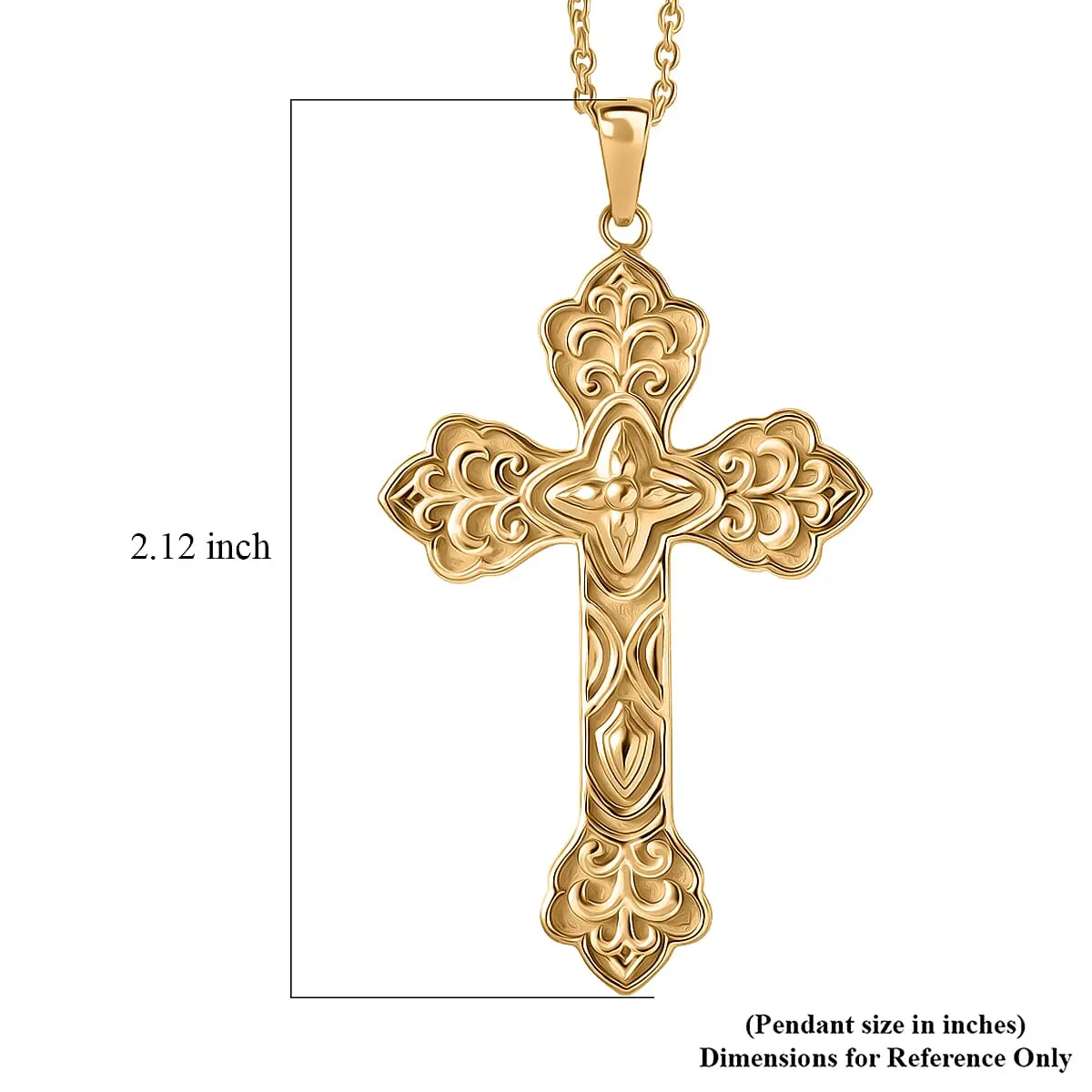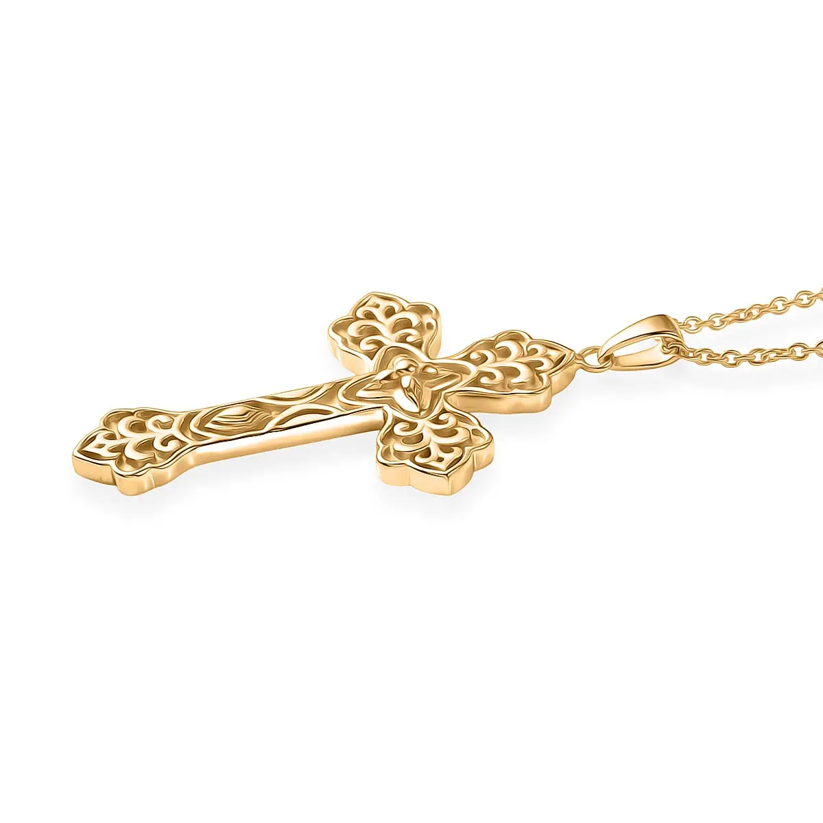 Eternal Faith Cross Pendant in 18K Yellow Gold Plated Bronze with ION Plated Yellow Gold Stainless Steel Necklace 20 Inches