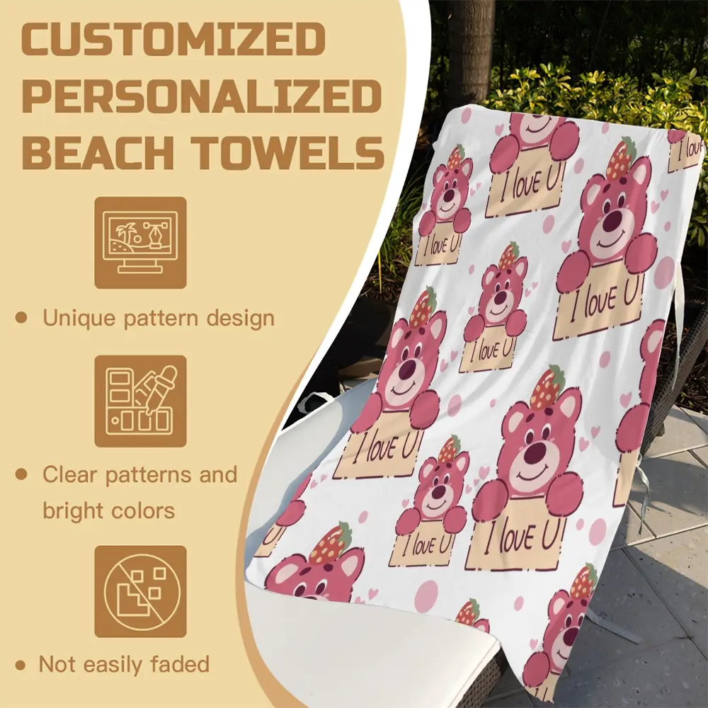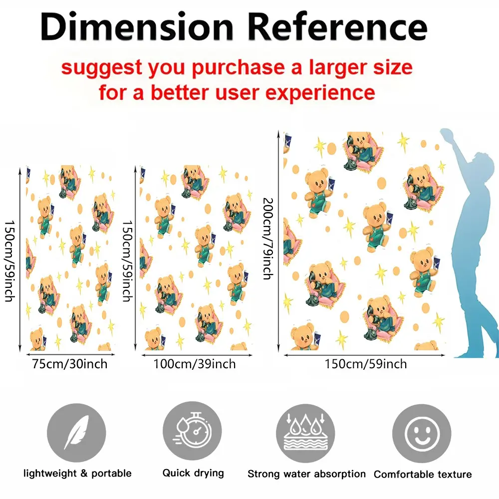 Cute Cartoon Bear Print Beach Towel, Japanese Style Kawaii Teddy Bear with Polka Dots Stars Hearts Pattern, Soft Microfiber Oversized Quick Dry Sand Free Absorbent Towel for Beach, Pool, Swimming, Travel, Camping and Yoga, Japanese Cute Aesthetic Beach Ac