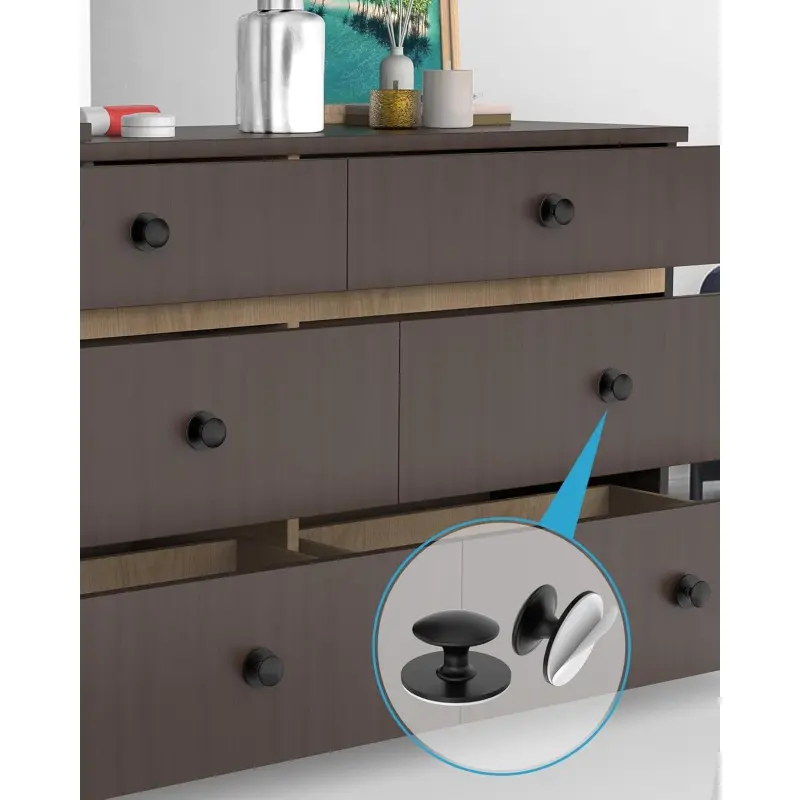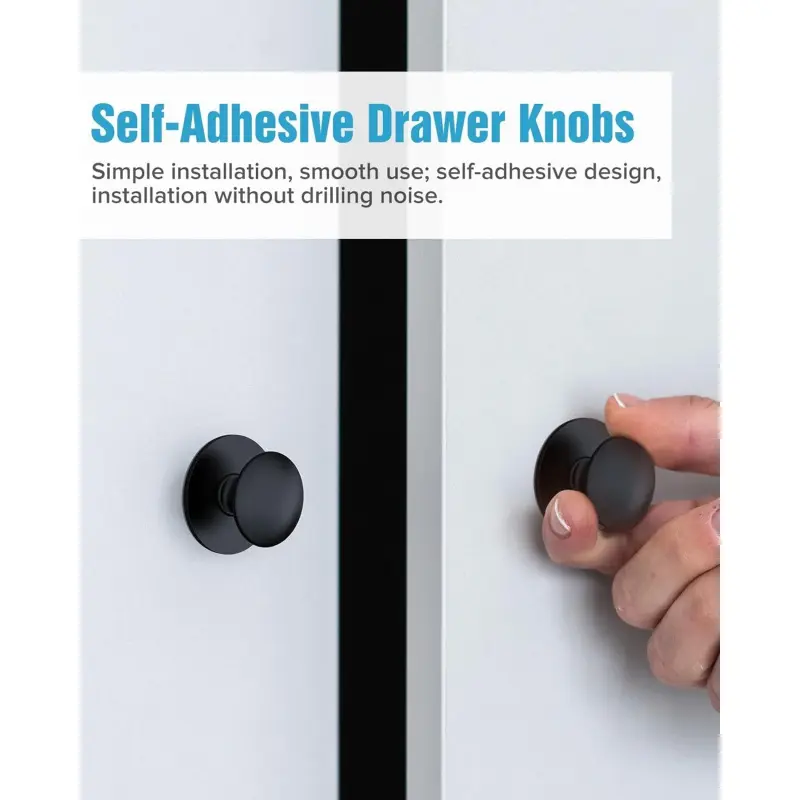 5 Pack Black Self-Adhesive Cabinet Knobs, Self-Stick Hardware Kitchen Cabinet Handles, No-Punch Peel and Stick Drawer Knobs for Refrigerators, Dressers, Windows, Closets