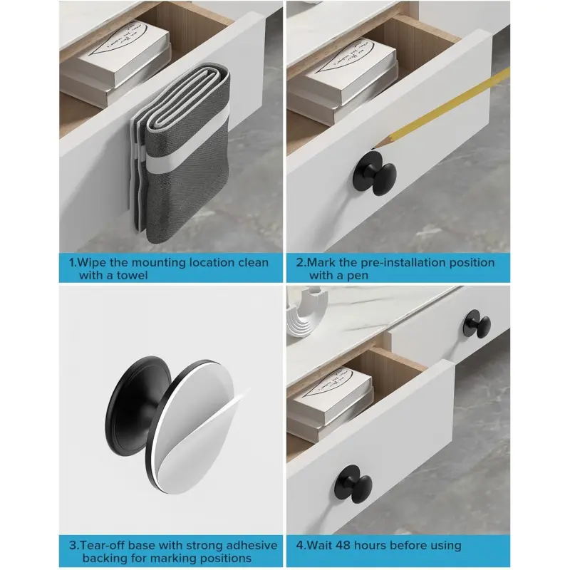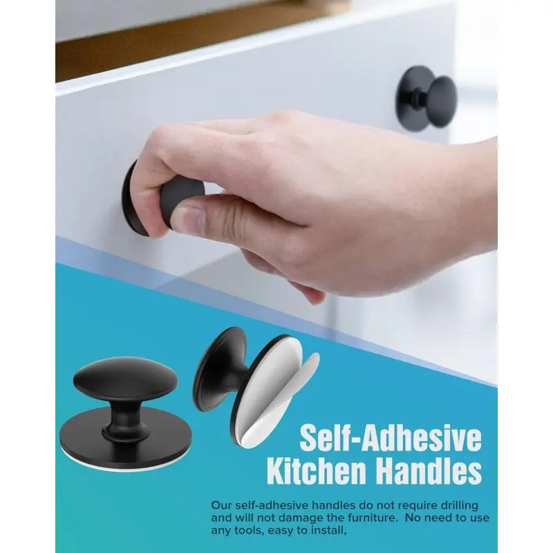 5 Pack Black Cabinet Drawer Knobs, Self-Adhesive Kitchen Handles, Self-Stick Hardware Cabinet Knobs, No-Punch Peel and Stick Knobs for Refrigerators, Dressers, Kitchen Cabinets, Windows, Closets