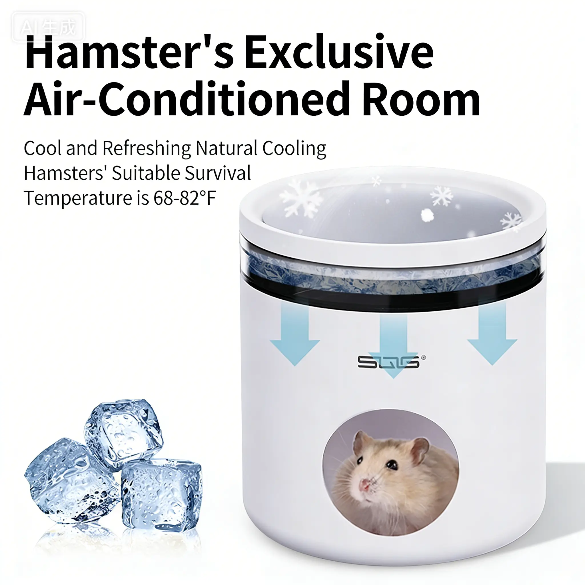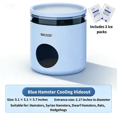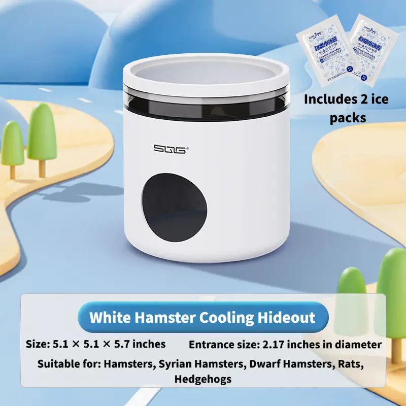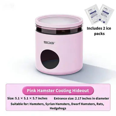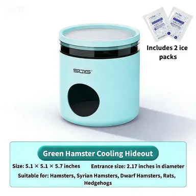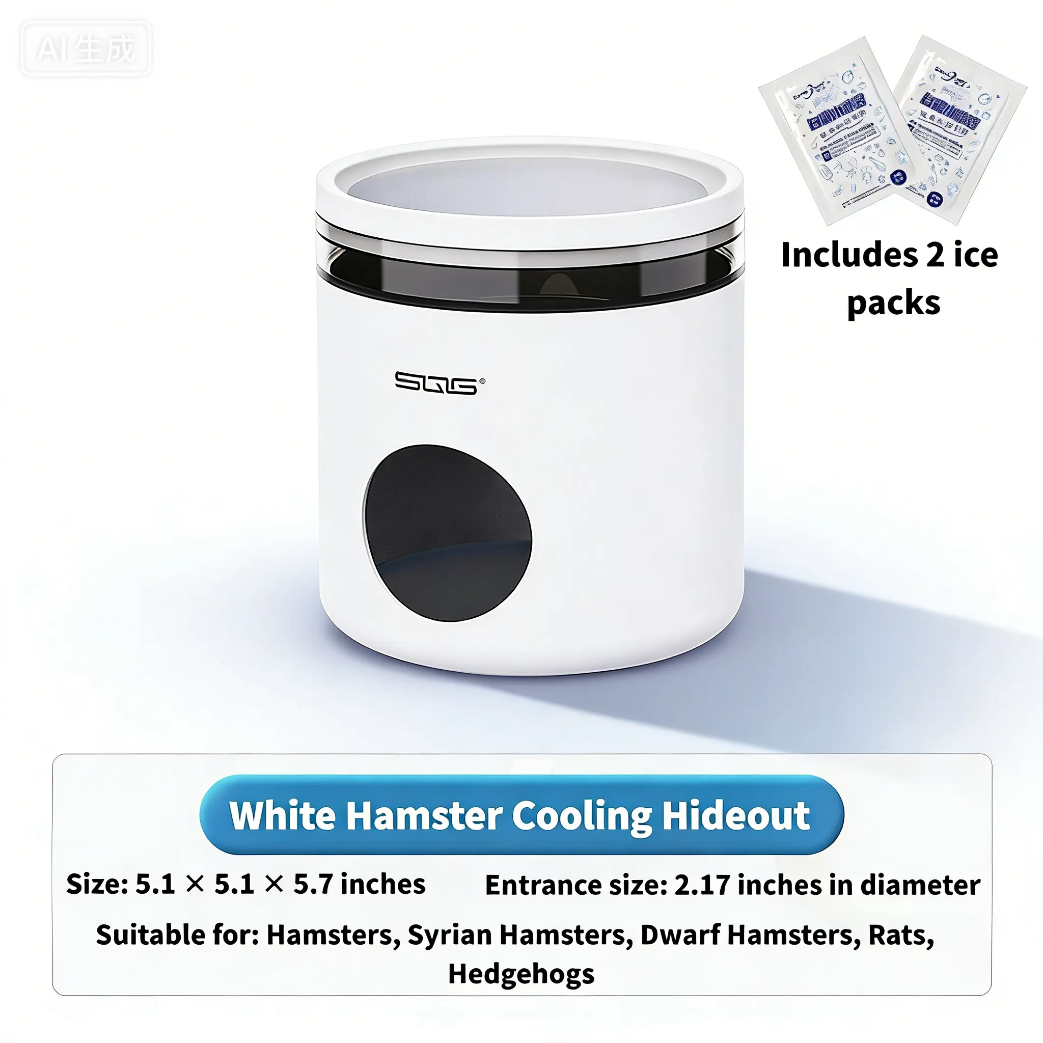 Small Pet Cooling & Hideout Hut, made of PP material, light-blocking, chew-resistant and roomy.Suitable for hamsters, Syrian hamsters, fancy rats, hedgehogs and other small pets.Comes with 2 replacement ice packs.