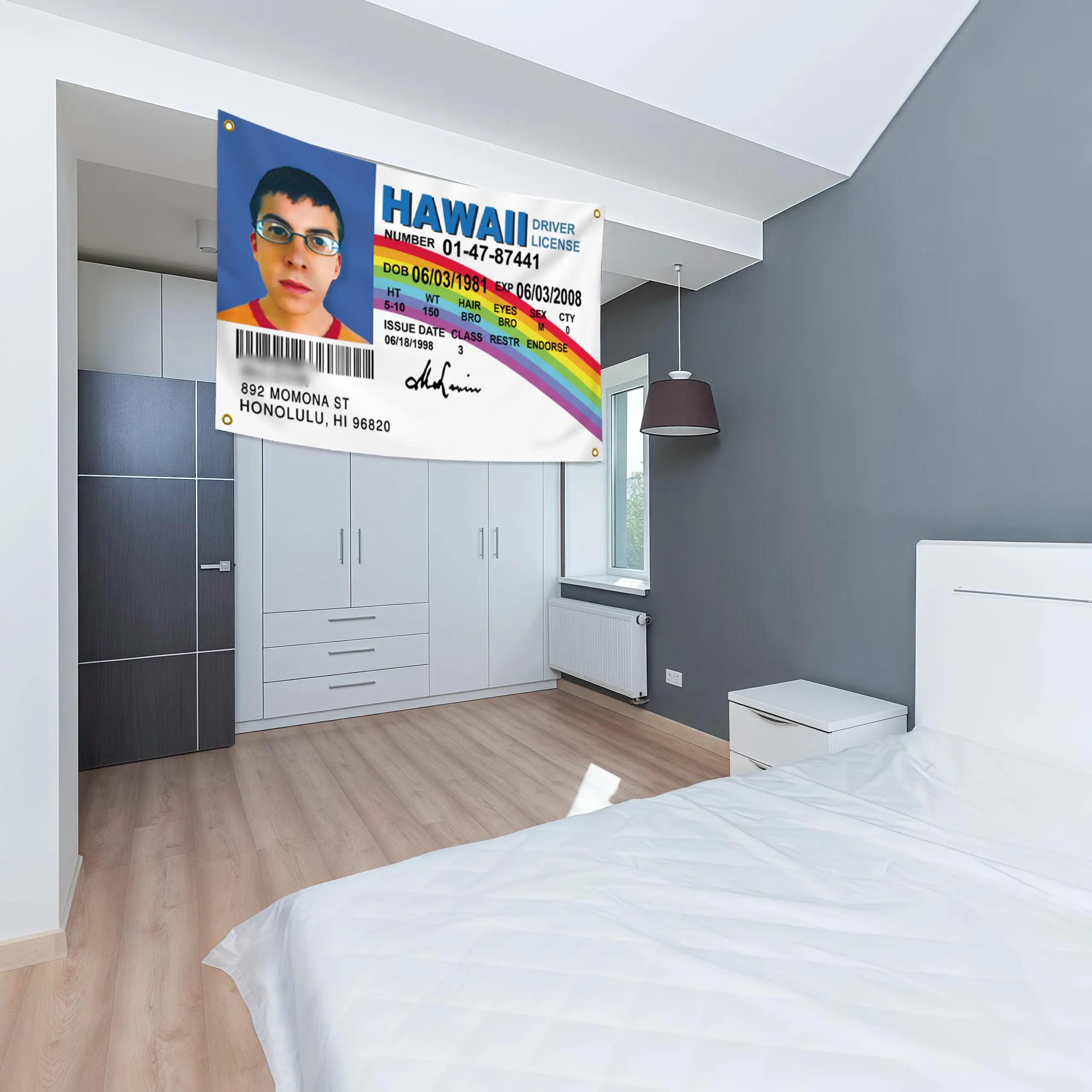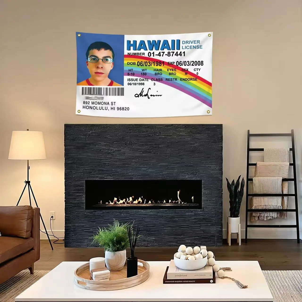 Hawaii ID Flag Fake Driver License 3x5 ft Mclovin Tapestry, Polyester with 4 Brass Grommets, Mc Loving Funny flags Poster for College Dorm Outdoor Banner Room Decor Home Decor Supplies