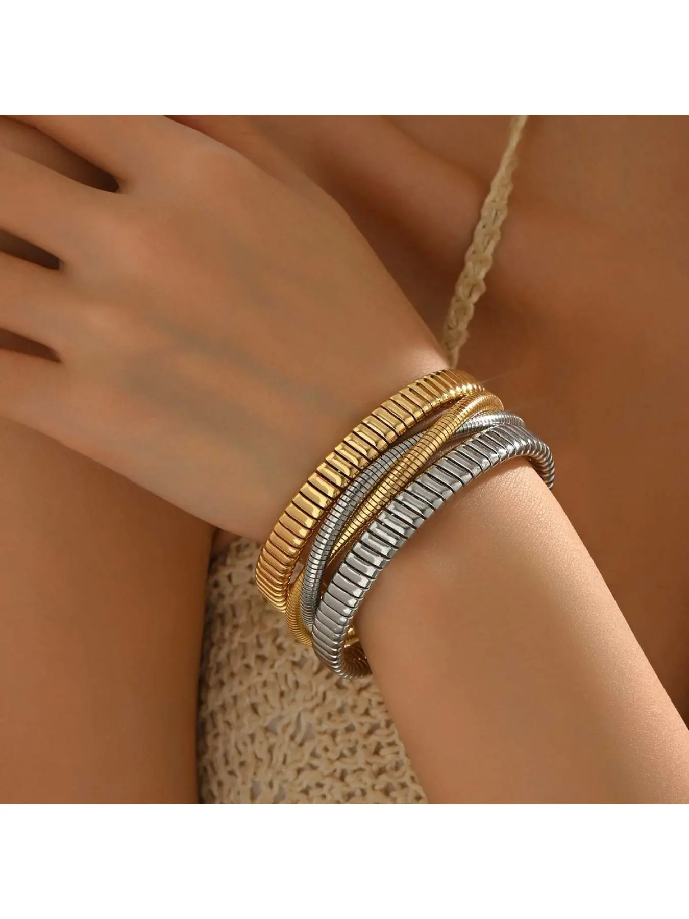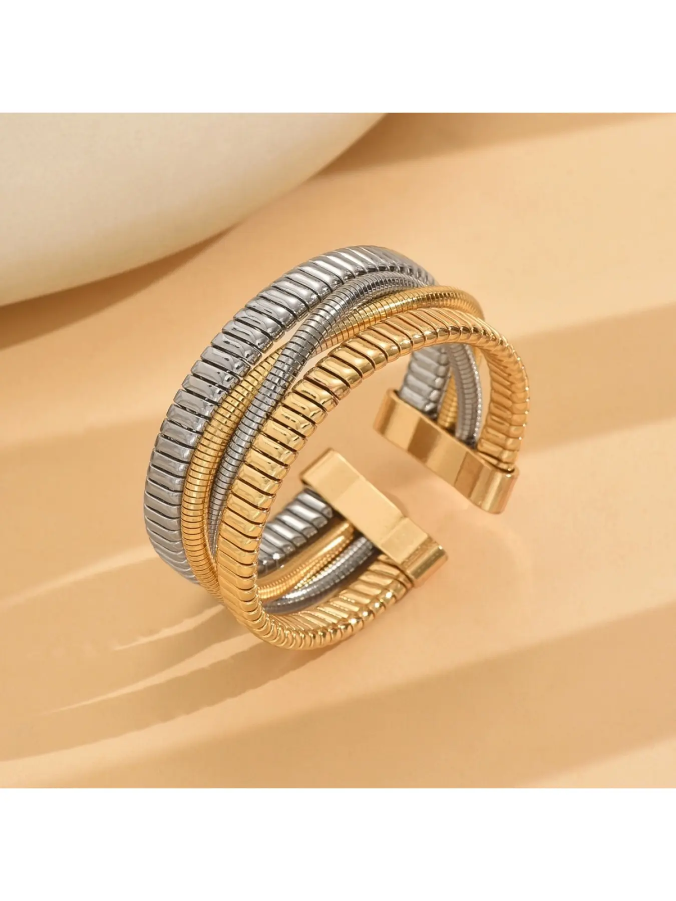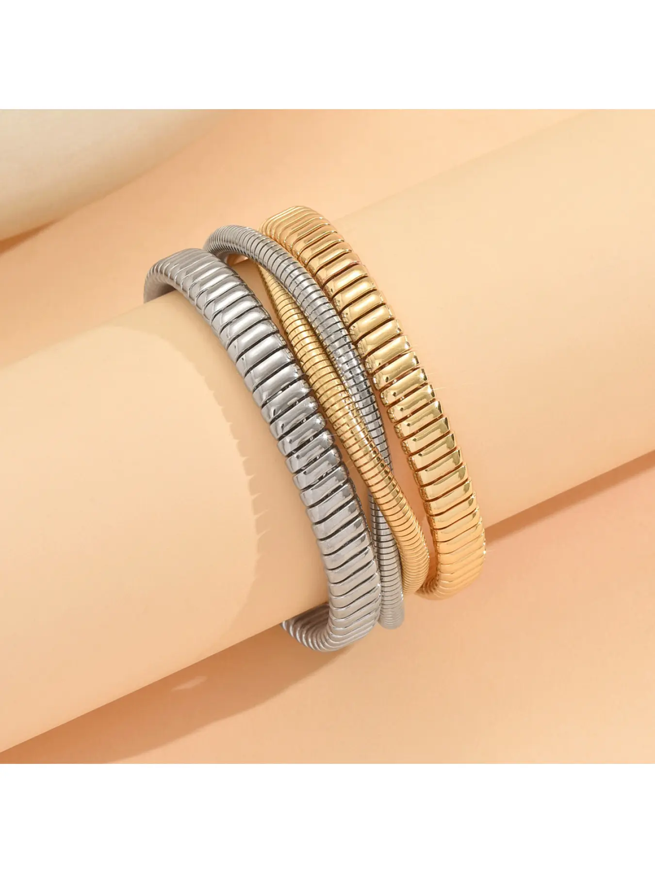 Simple punk spiral-shaped bracelet, multi-colored three-ring elastic ring with unique vertical stripes handchain